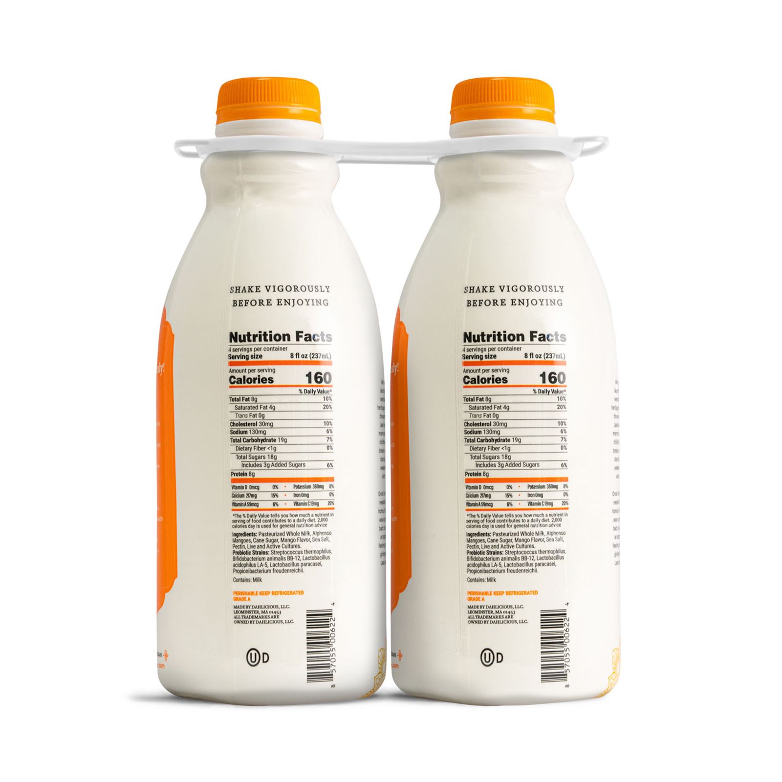 Ingredients: Pasturized Whole Milk, Alphonoso Mangoes, Cane Sugar, Mango Flavor, Sea Salt, Pectin, Live and Active Cultures. Probiotic Strains: Streptococcus thermophilus, Bifidobacterium animalis BB-12, Lactobacillus acidophilus LA-5, Lactobacillus paracasei, Propionibacterium freudenreichii. Contains Milk.