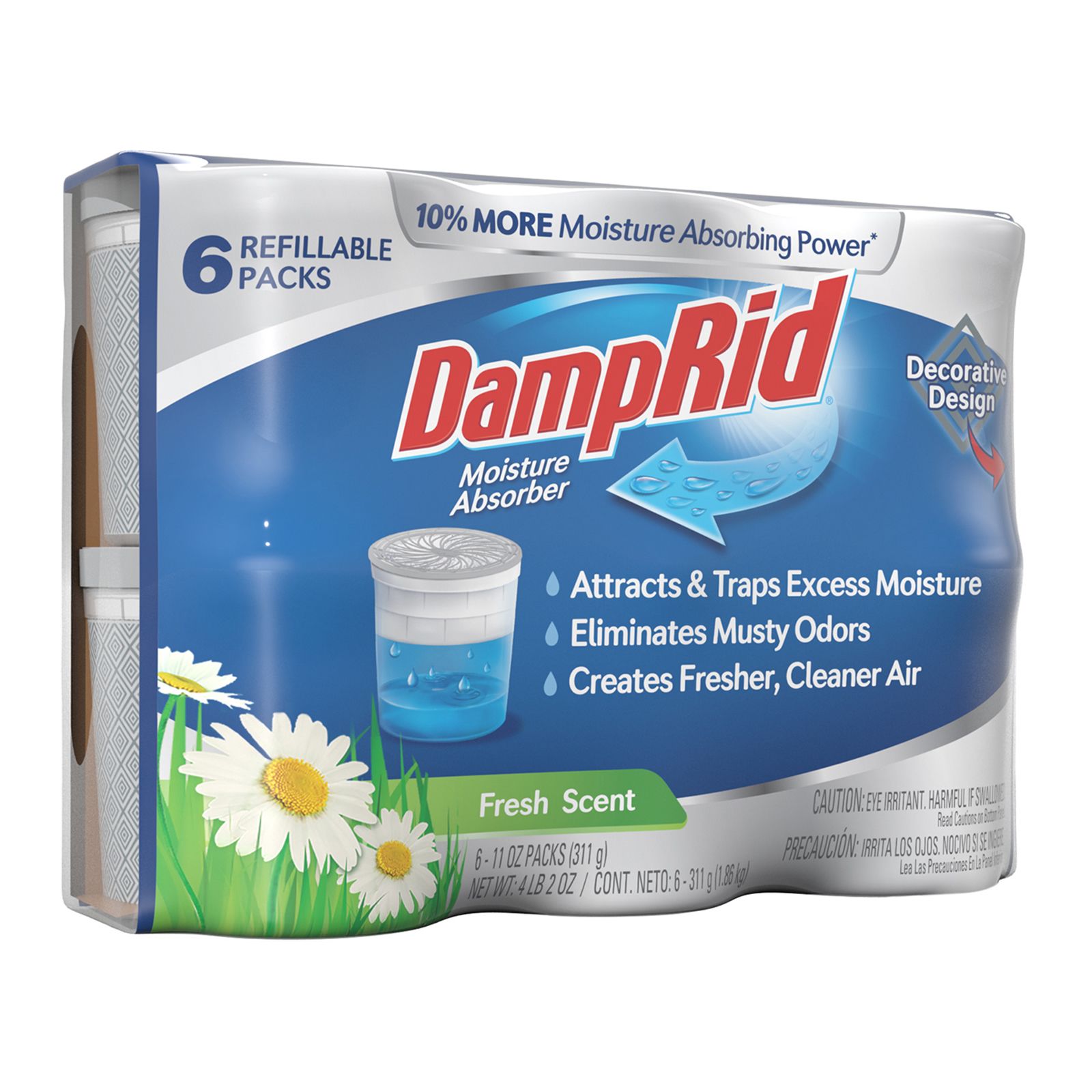 DON'T JUST COVER UP ODORS, ELIMINATE THEM: DampRid 11-ounce Refillable Fresh Scent Moisture Absorbers attract and trap excess moisture – eliminating musty odors for fresher, cleaner air. Pack of 6 cups.
