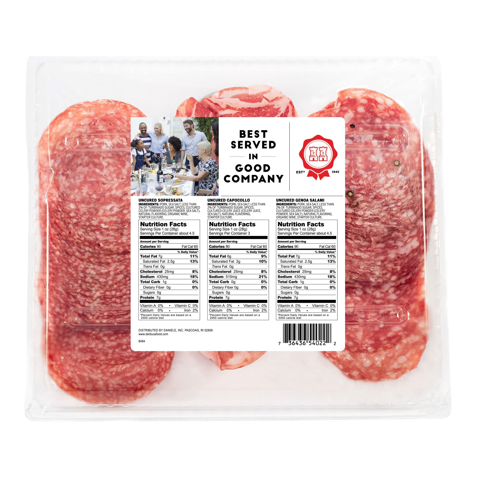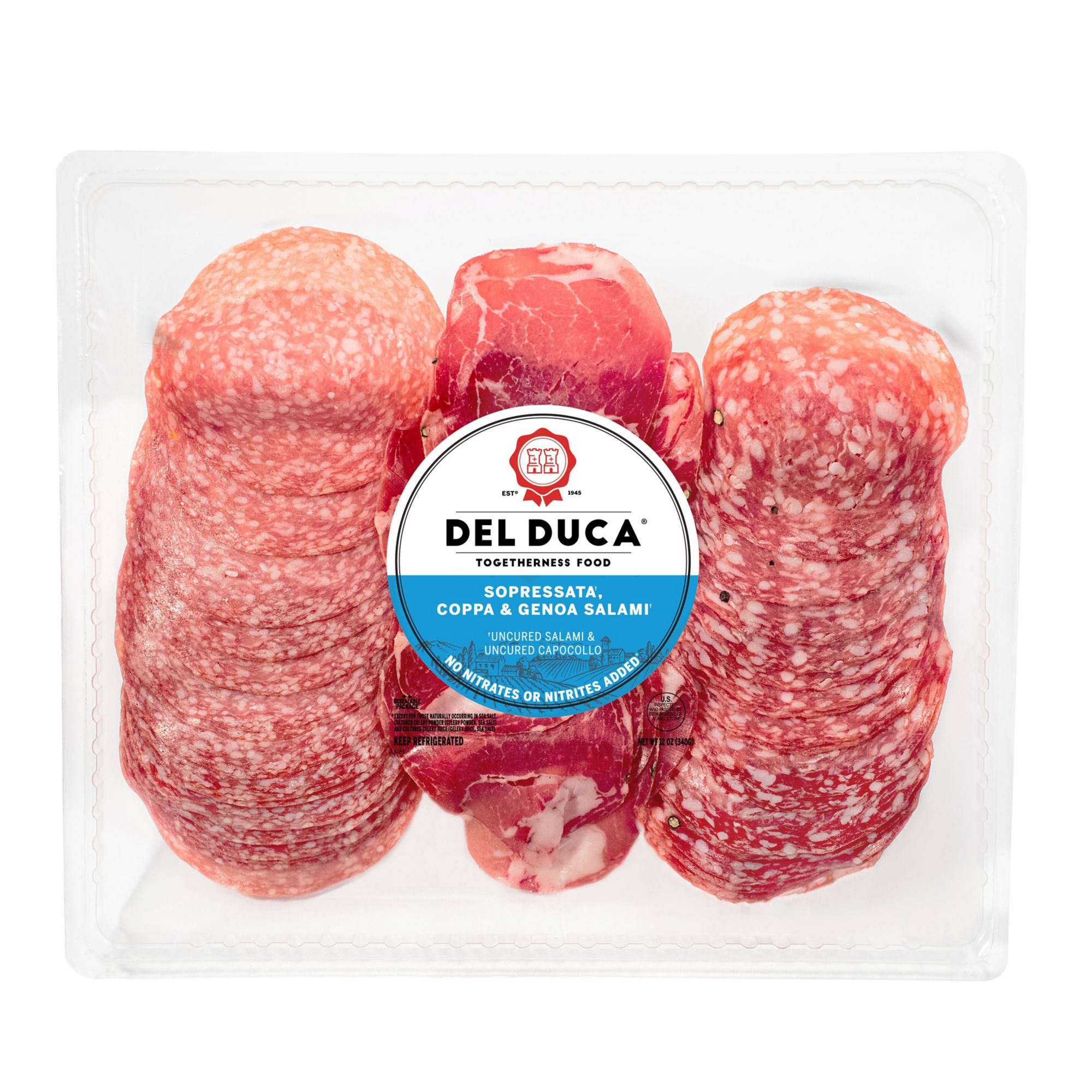 Experience a variety of delicious, Italian-style meats with Del Duca Sopressata, Capocollo and Genoa Salami. The artisan collection is great for making gourmet sandwiches or adding ingredients to an antipasto and is contained in a resealable package to help preserve freshness.