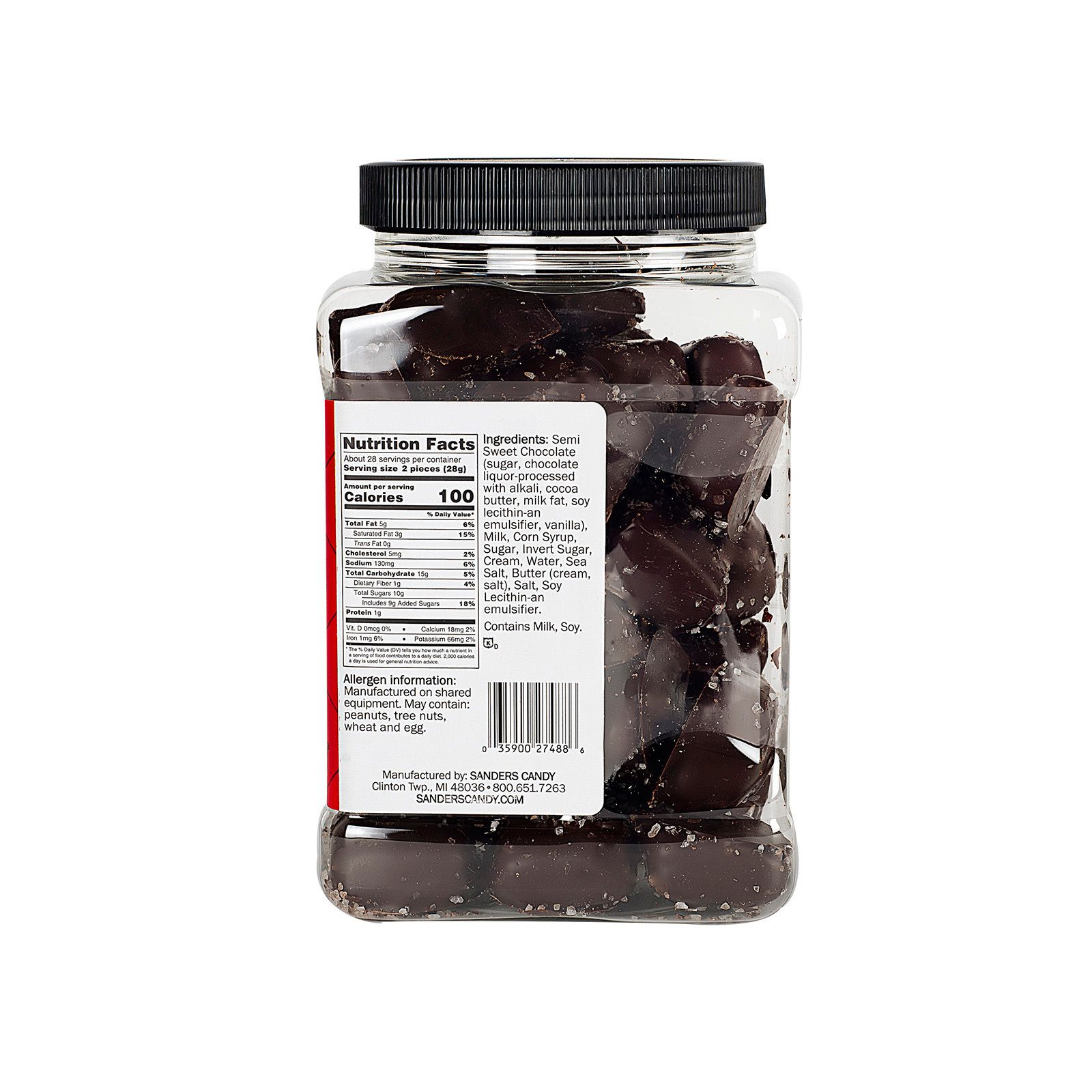 (1) Sanders Dark Chocolate Sea Salt Caramels Tub, 28 oz.