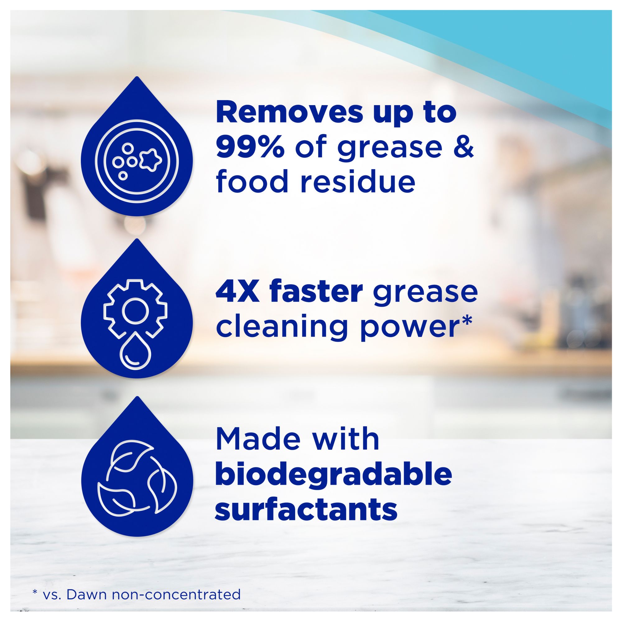 Dawn Ultra's powerful formula helps you get through more dishes with less* dishwashing liquid (*vs. Dawn Non-Concentrated)