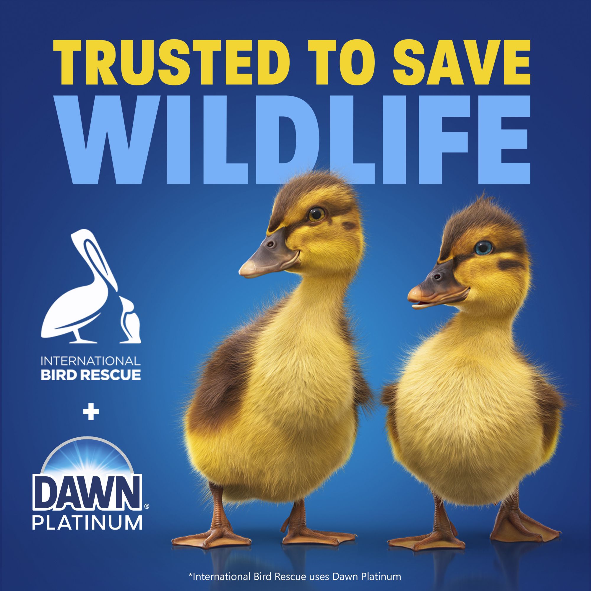 Saves wildlife: Dawn dish soap is the only brand trusted by rescue workers* to clean wildlife impacted by oil spills. (*International Bird Rescue uses Dawn Platinum)