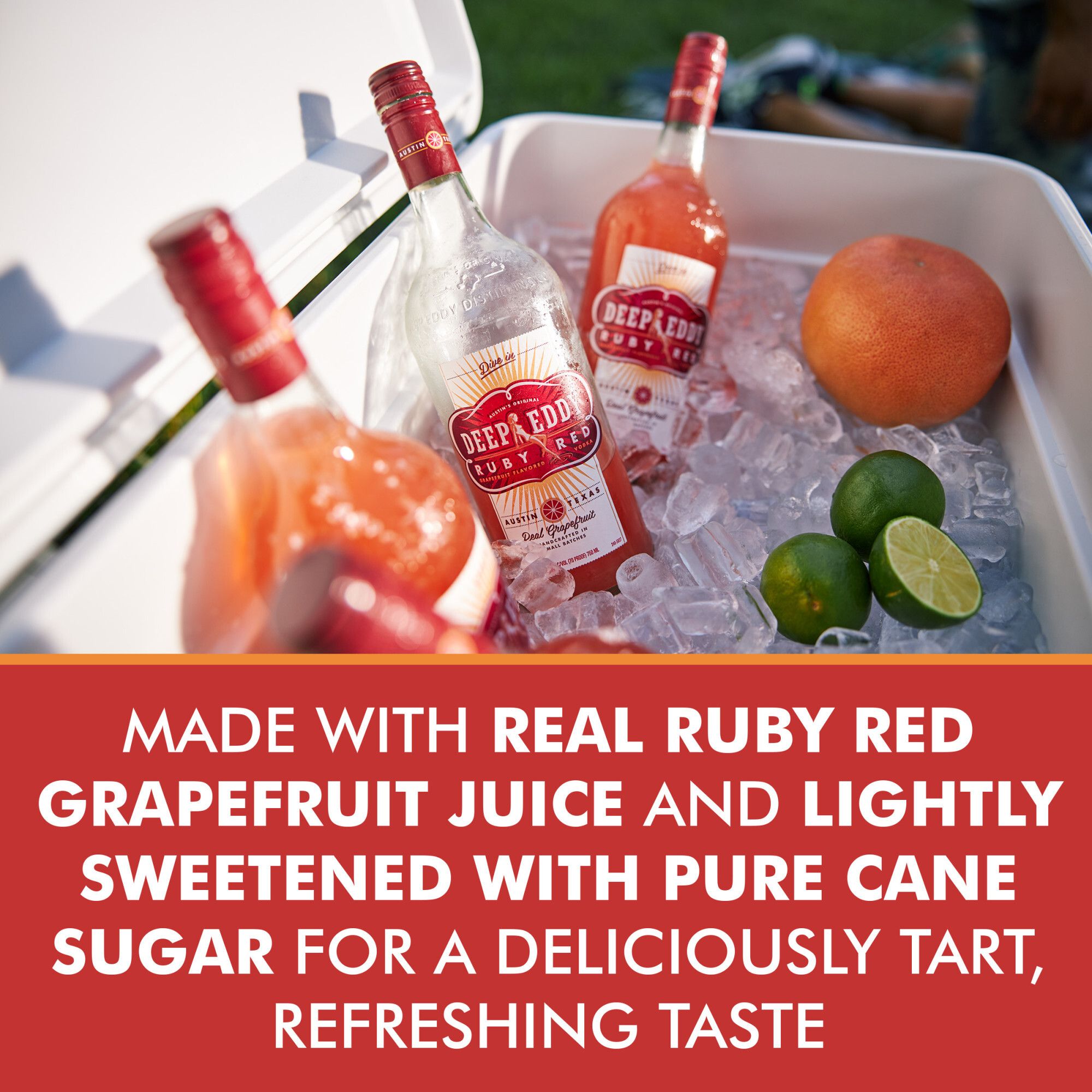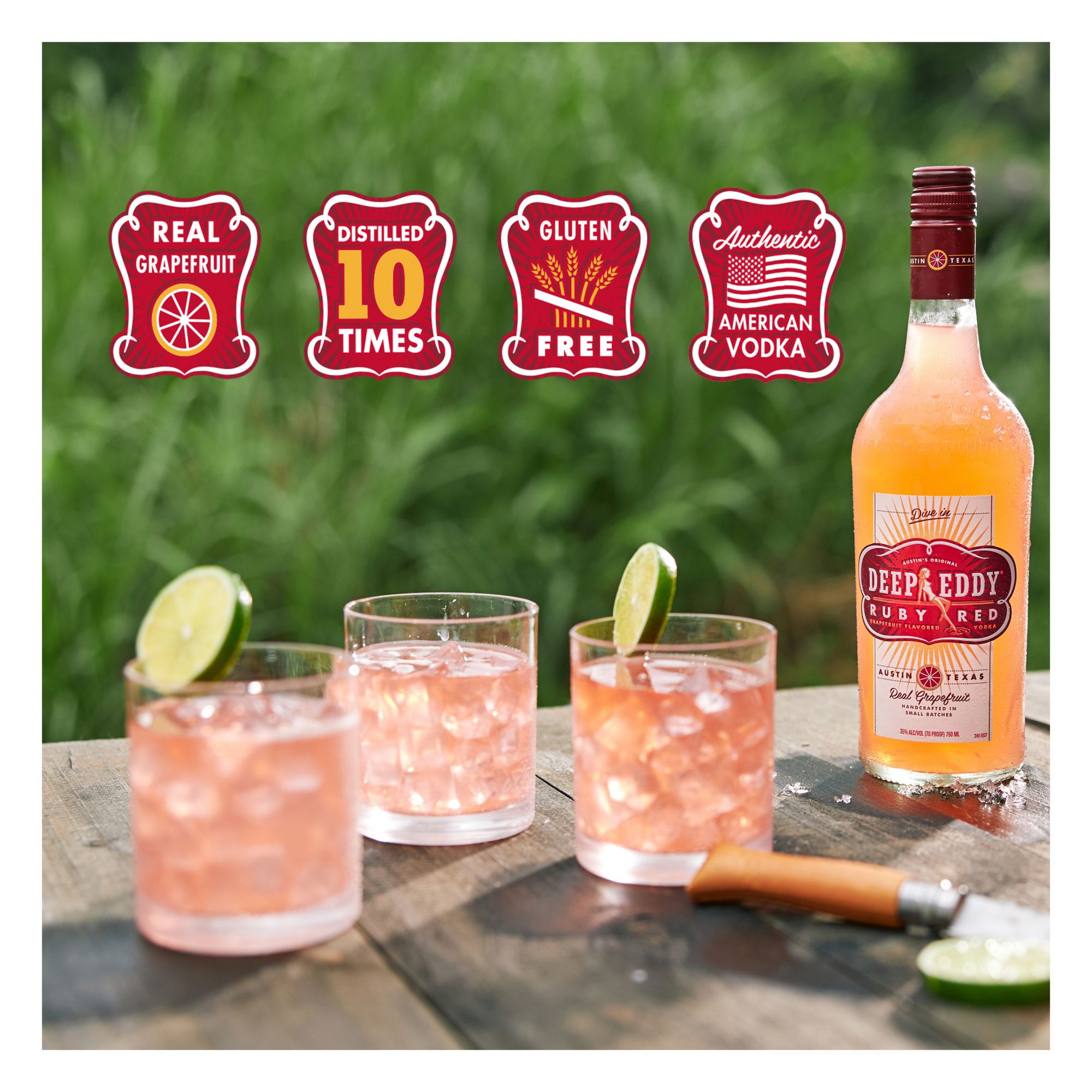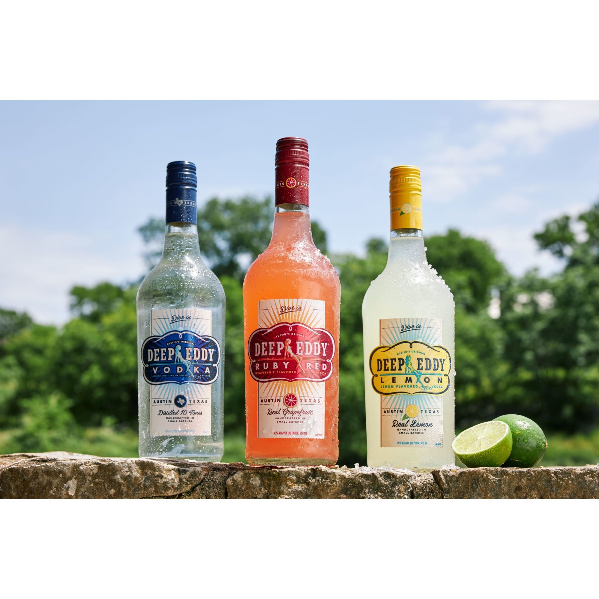 Deep Eddy Ruby Red Grapefruit Vodka isn't just a flavored spirit–it's bold, bright, and refreshingly real. Crafted in Austin with our award-winning Original Vodka–distilled 10 times, filtered 8–and infused with real grapefruit juice and a touch of cane sugar, it delivers a crisp, tart-sweet flavor with no artificial additives. Naturally gluten free and handcrafted in small batches, Ruby Red is smooth, vibrant, and versatile–perfect with soda, sparkling water, or in a Paloma. From poolside afternoons to backyard brunches and casual nights in, it's made for good friends, good music, and good times. Cheers to real fruit, real flavor, and Deep Eddy Ruby Red–refreshingly real and always unforgettable.