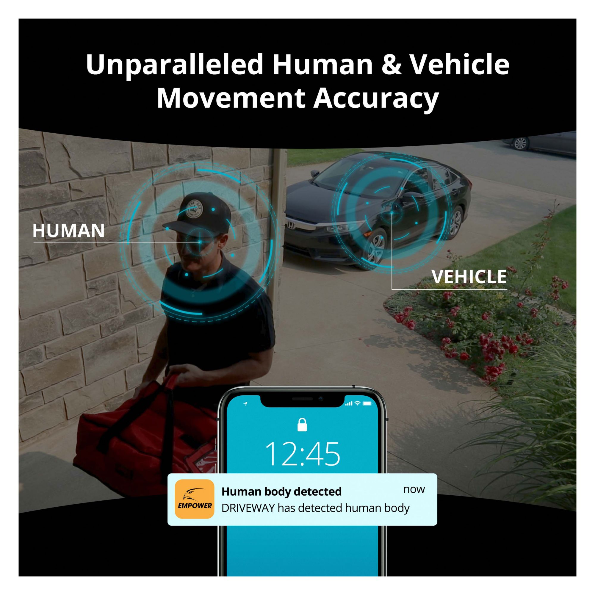 - Artificial Intelligence with Smart Human and Vehicle Detection: Accurately distinguish between human and vehicle movement, reducing false-alarms and providing greater peace of mind