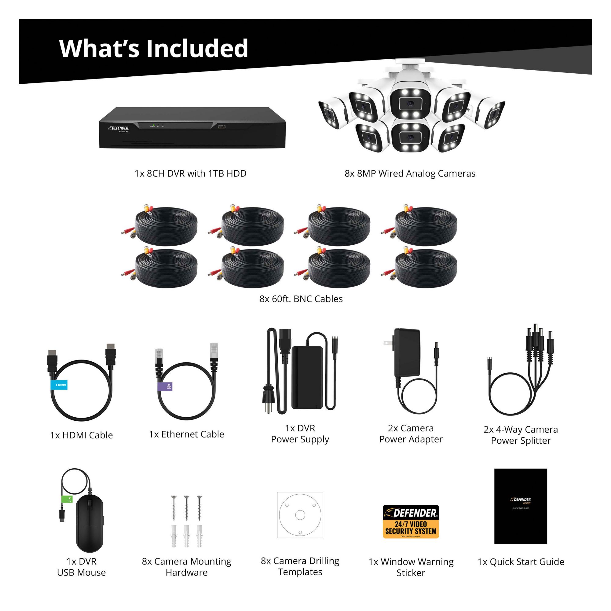 Defender Vision 8-Channel 8-Camera 4K Wired Security System with 1TB HDD DVR