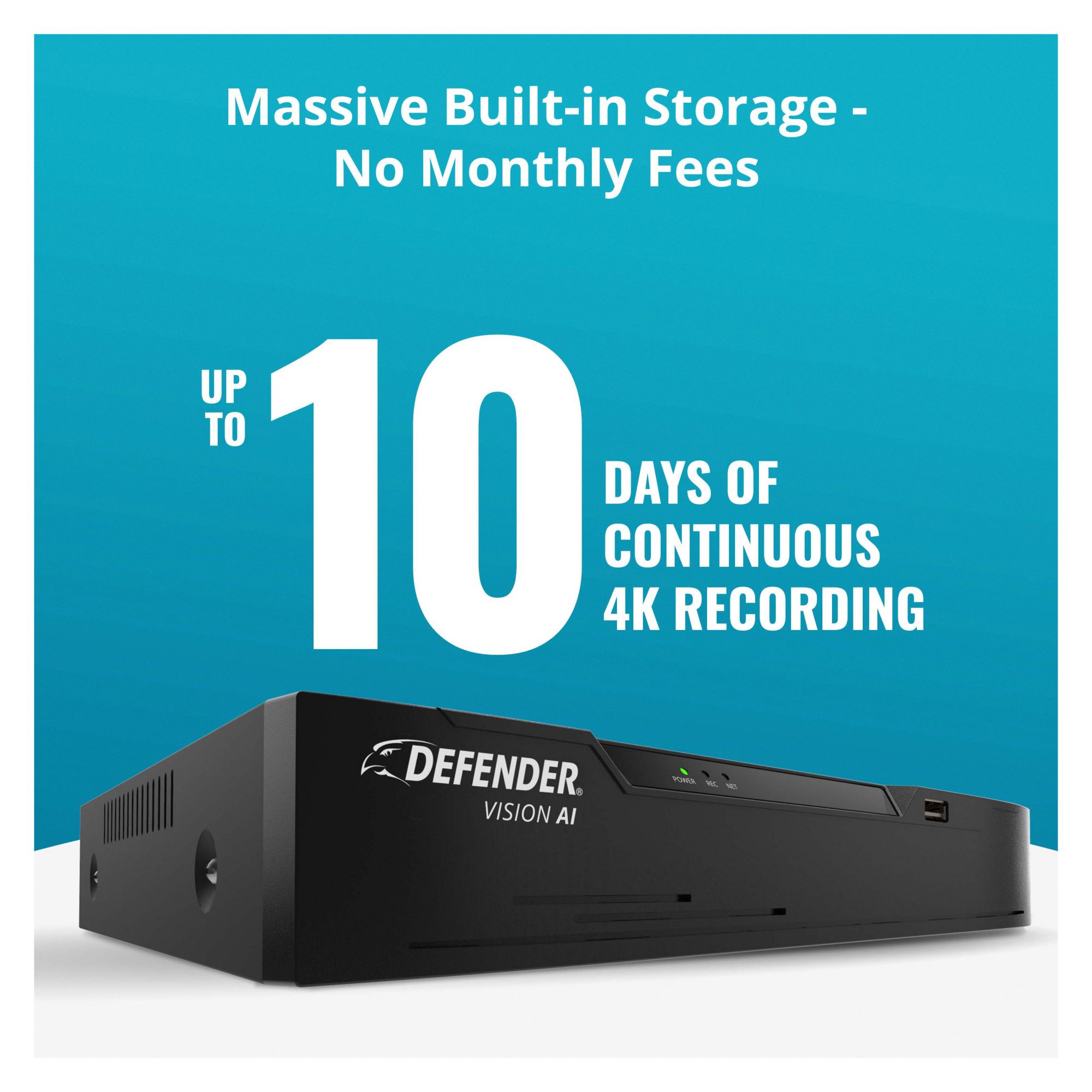 - No Monthly Subscriptions: Never pay to store your recordings again. With a tremendous 1TB of built-in storage, record up to 20 days of full 4K Ultra HD video footage