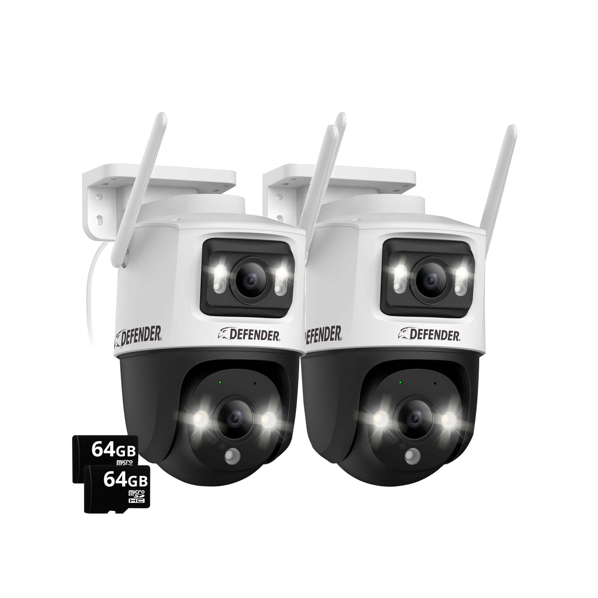 Defender AI POWERED Guard Pro 3K PLUS Dual Lens PTZ Wi-Fi 6 Plug-in Security Camera with 64 GB SD card, 2 pk.