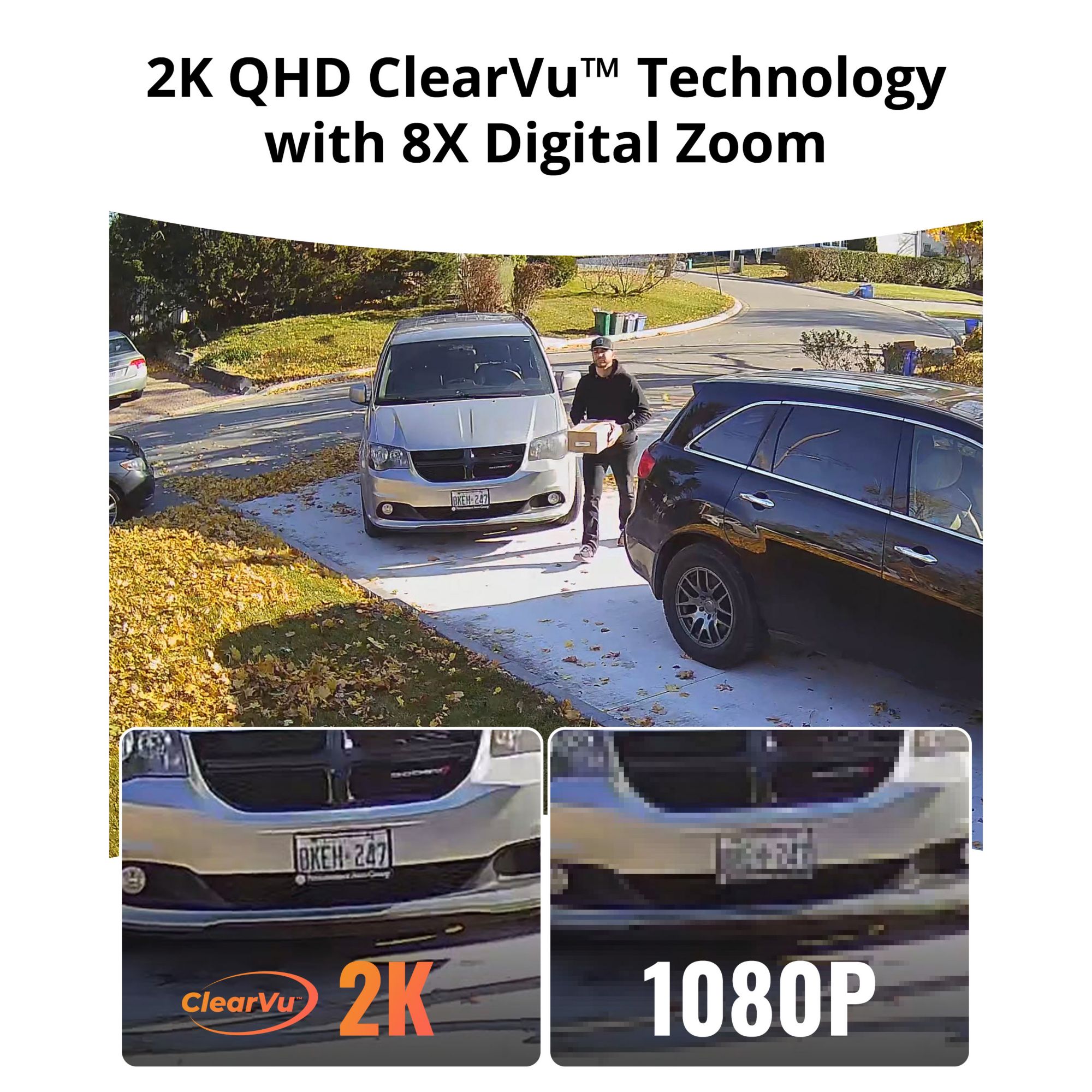 Eliminate blind spots and view every angle with the ability to pan and tilt the camera. Digitally zoom in and out to precisely see every detail, near and far. Install your camera on any wall or ceiling using the included versatile mounting bracket. Using cutting-edge motion tracking technology, Guard Pro PTZ detects humans and/or any object in motion. Once enabled, the security camera follows an object in motion, recording its every move and sends you a notification. Capture crisp detail for ultimate protection in unparalleled 2K QHD clarity with audio recording. Using a 3.6mm lens, record true-to-life footage, including visibility of license plates at an incredible 25 frames per second (FPS) of recording.