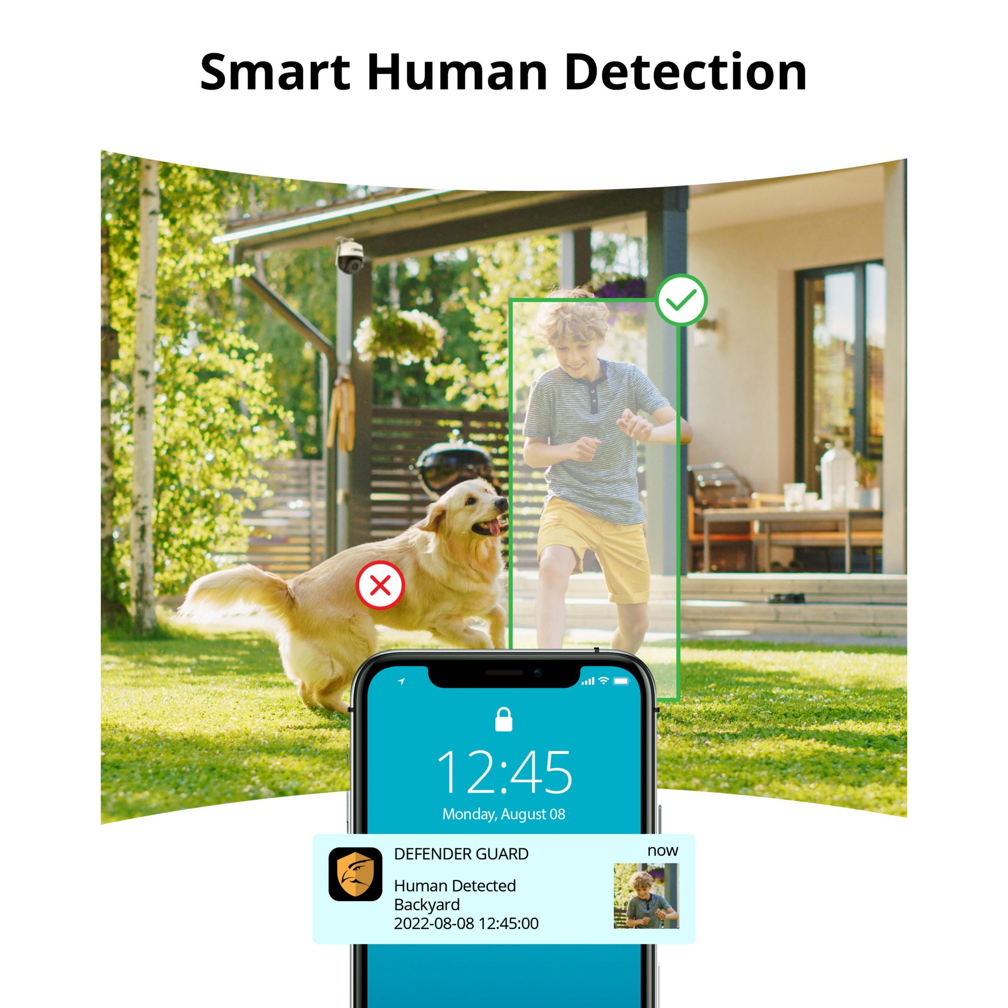 LED spotlight and siren deterrence: Stop intruders in their tracks and add peace of mind with the powerful LED spotlight and loud 110dB siren