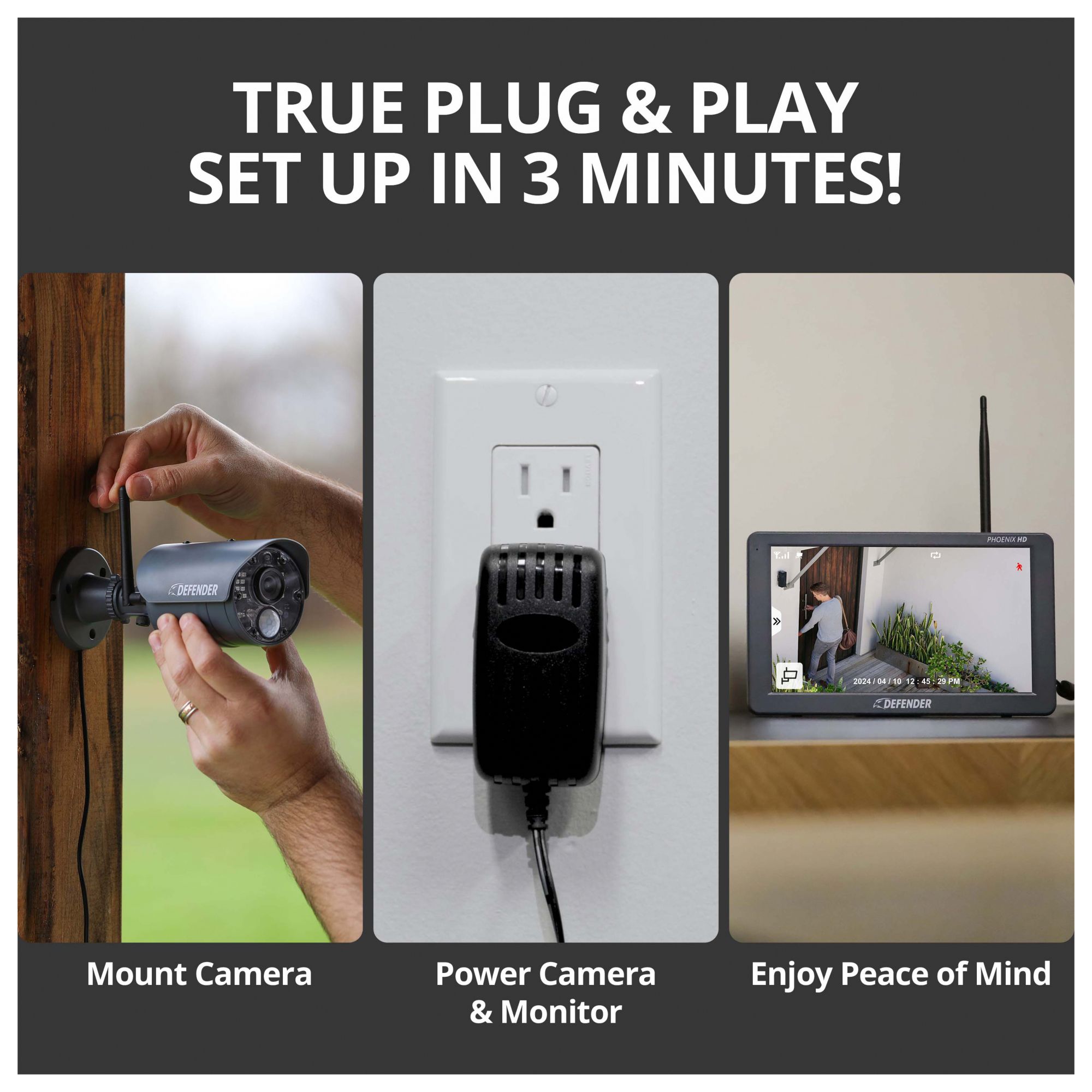 Defender PHOENIXHD Non-Wi-Fi, Plug-in Power Security System with 10.1” HD Monitor with 2 Cameras