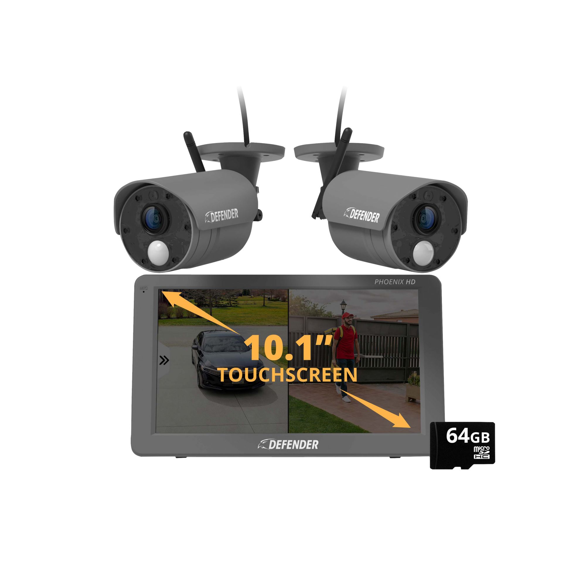 Defender PHOENIXHD Non-Wi-Fi, Plug-in Power Security System with 10.1” HD Monitor with 2 Cameras