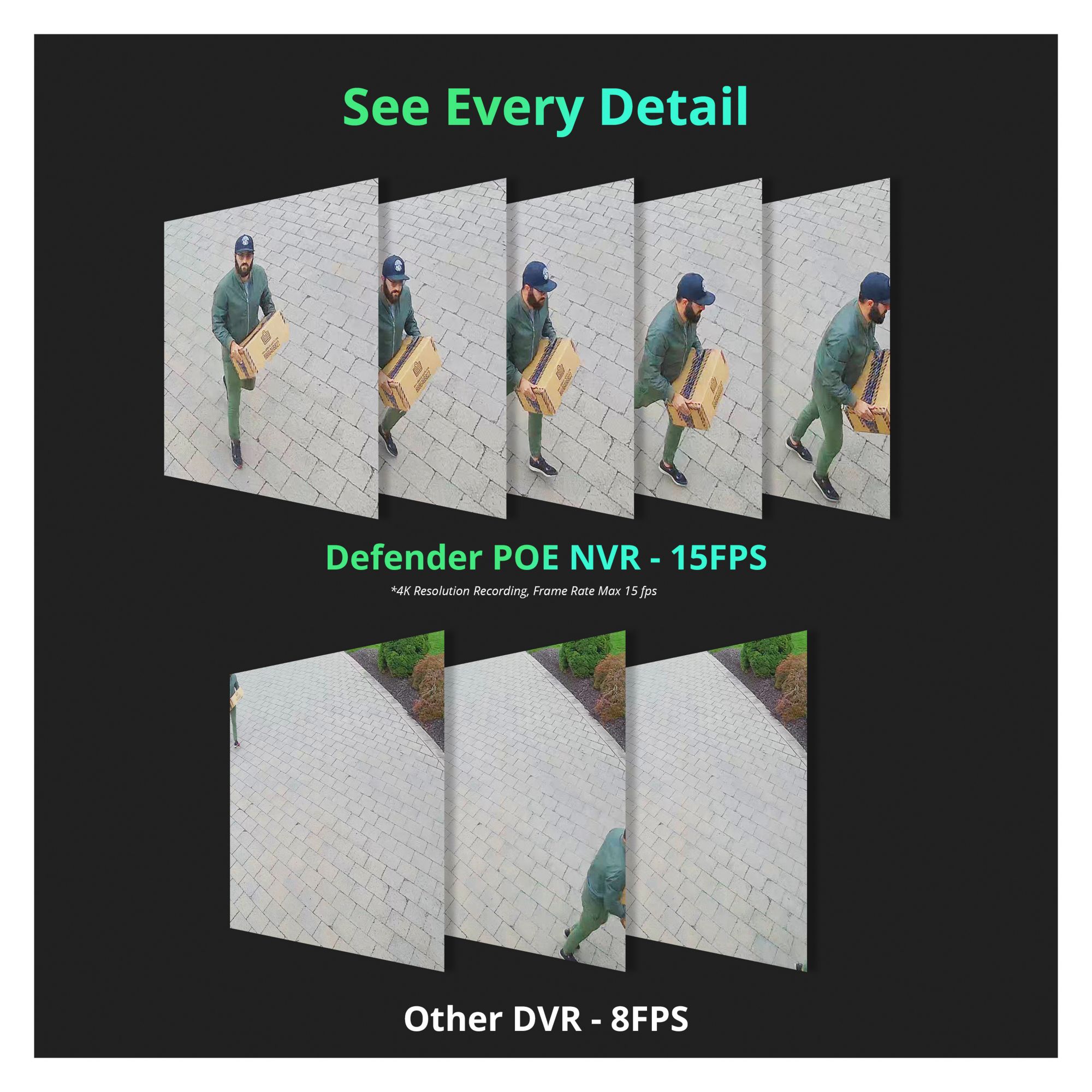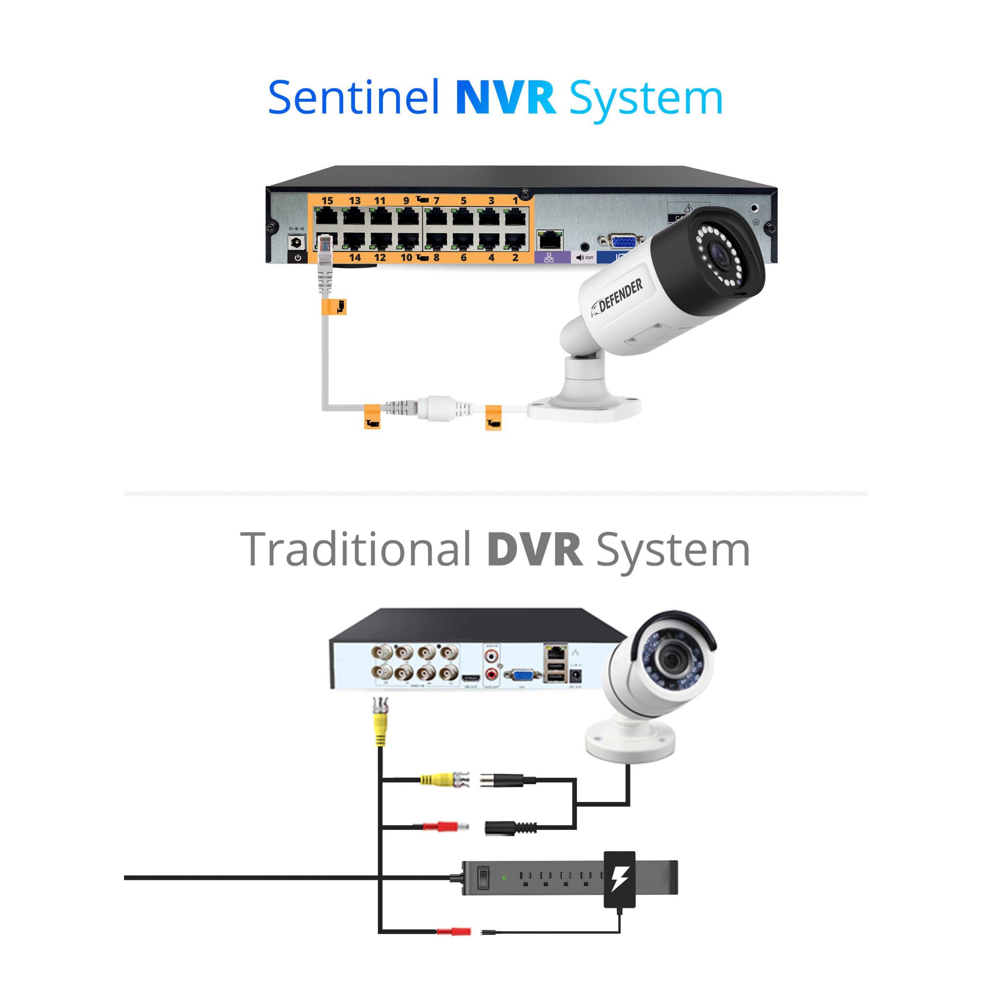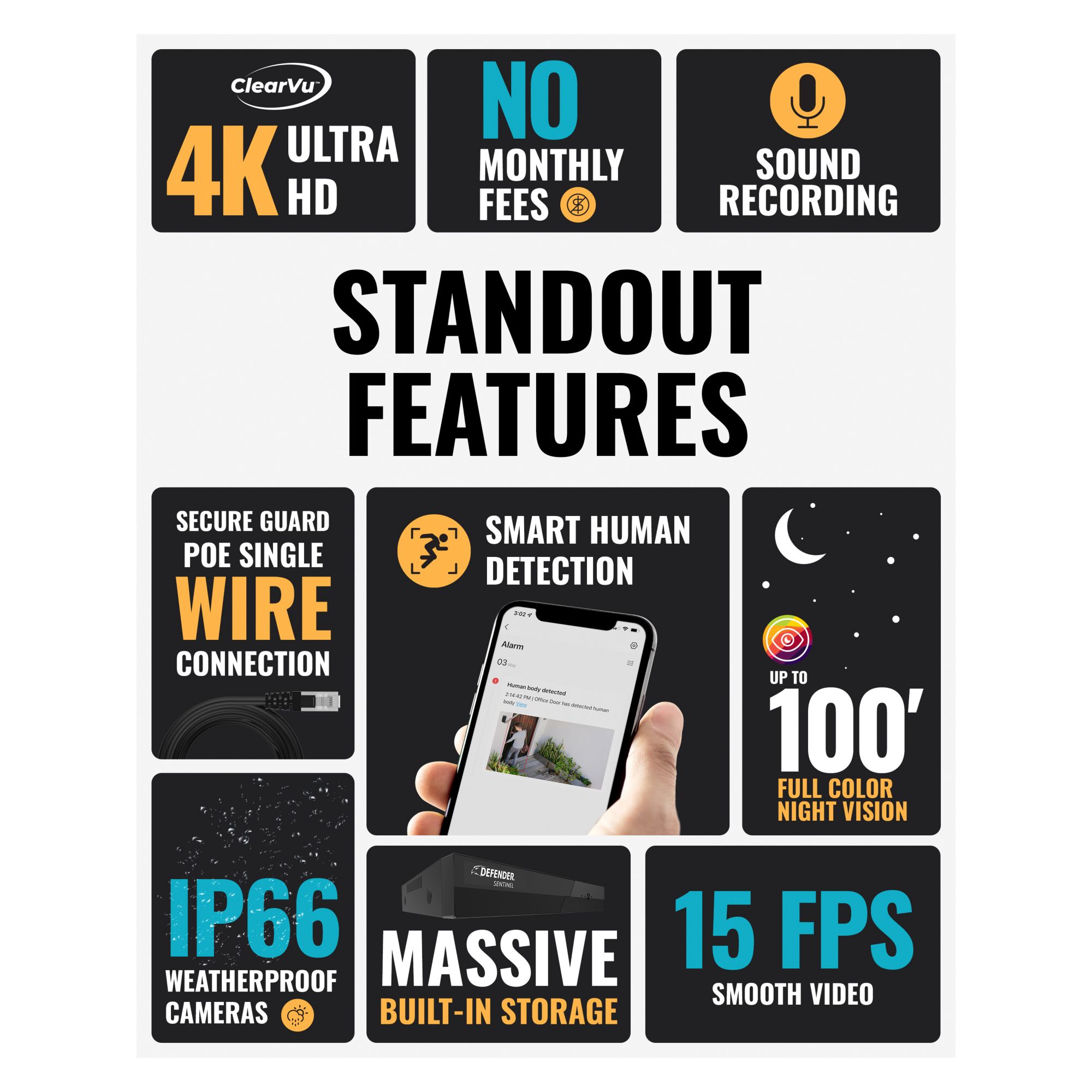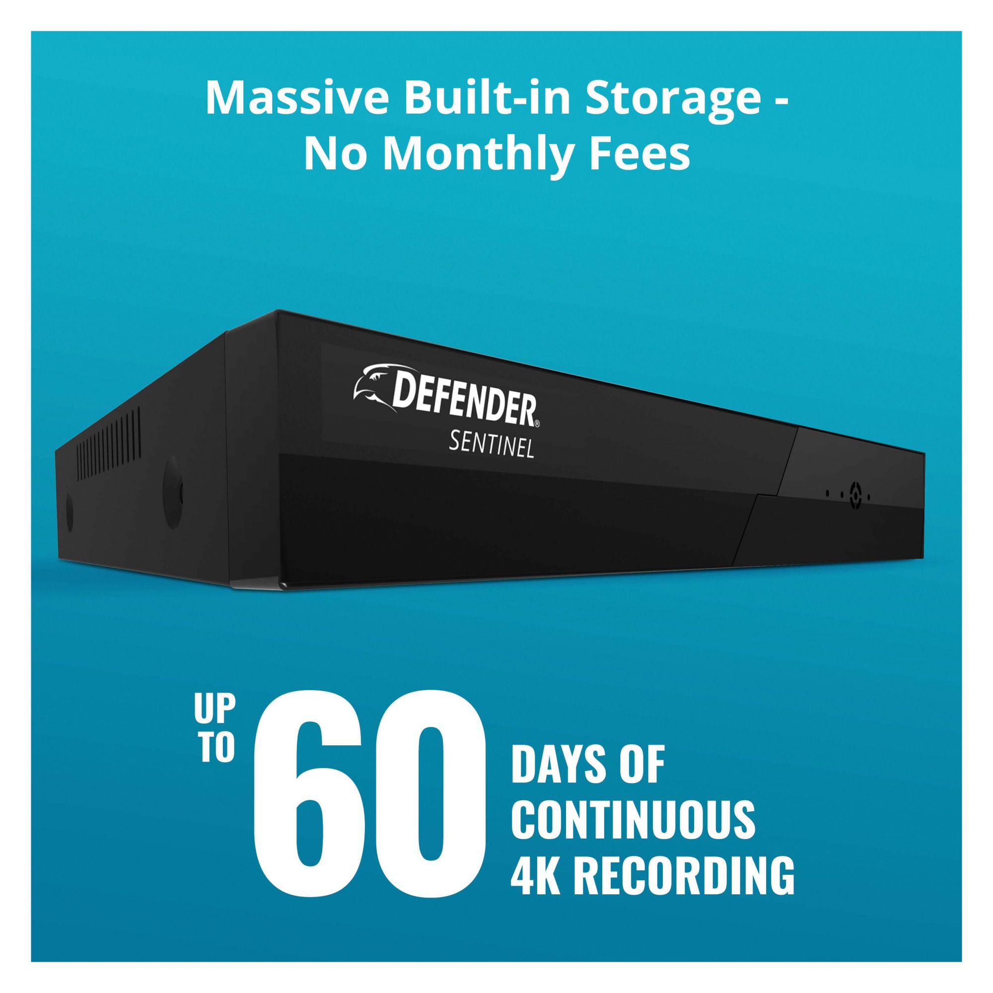 Defender Sentinel 16-Channel 16-Camera 4K Metal Security System with 12TB HDD NVR, Color Night Vision, and Human Detection