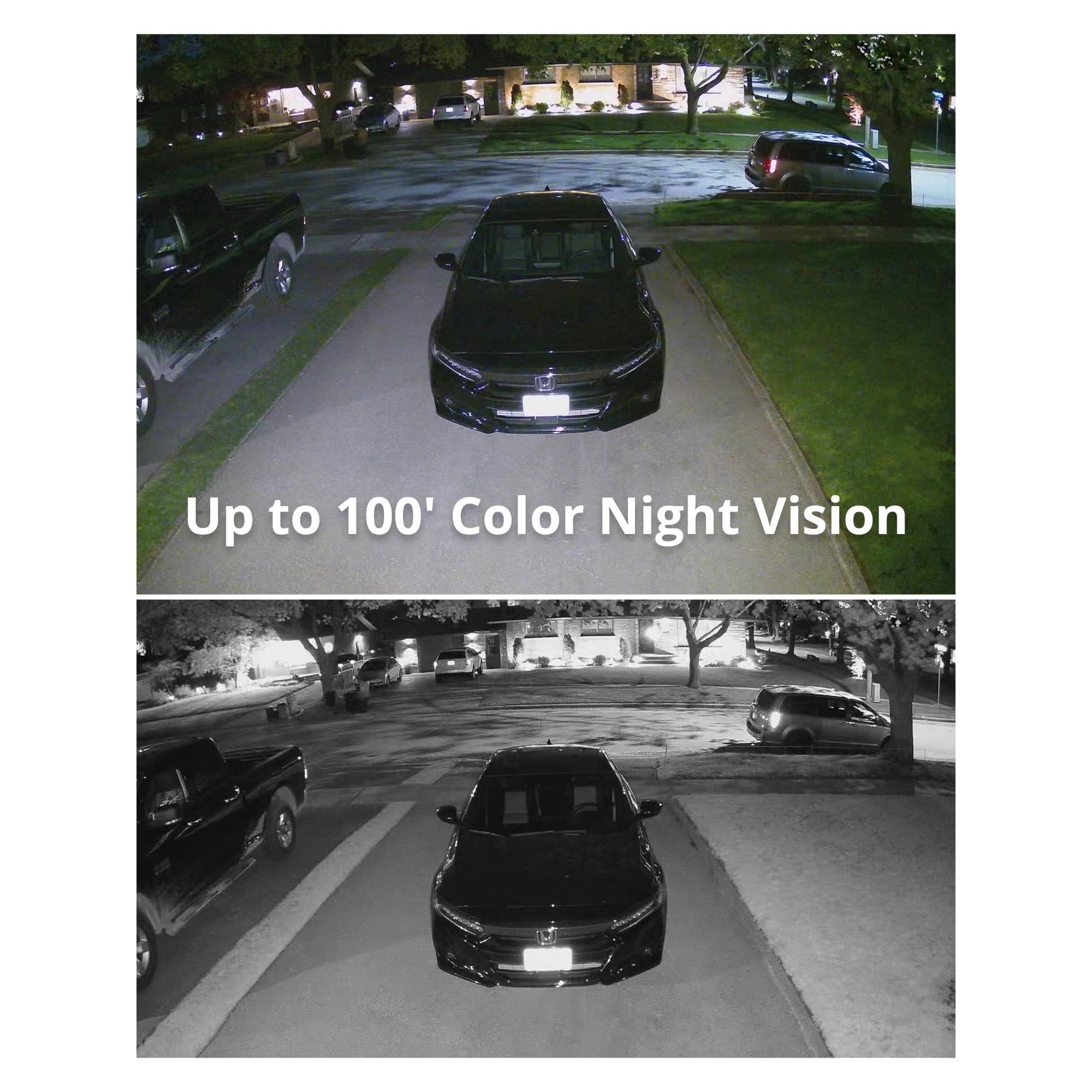 Keep your property protected 24 hours a day with Sentinel's powerful LED spotlight and vivid color night vision even in pitch darkness up to 100’ away