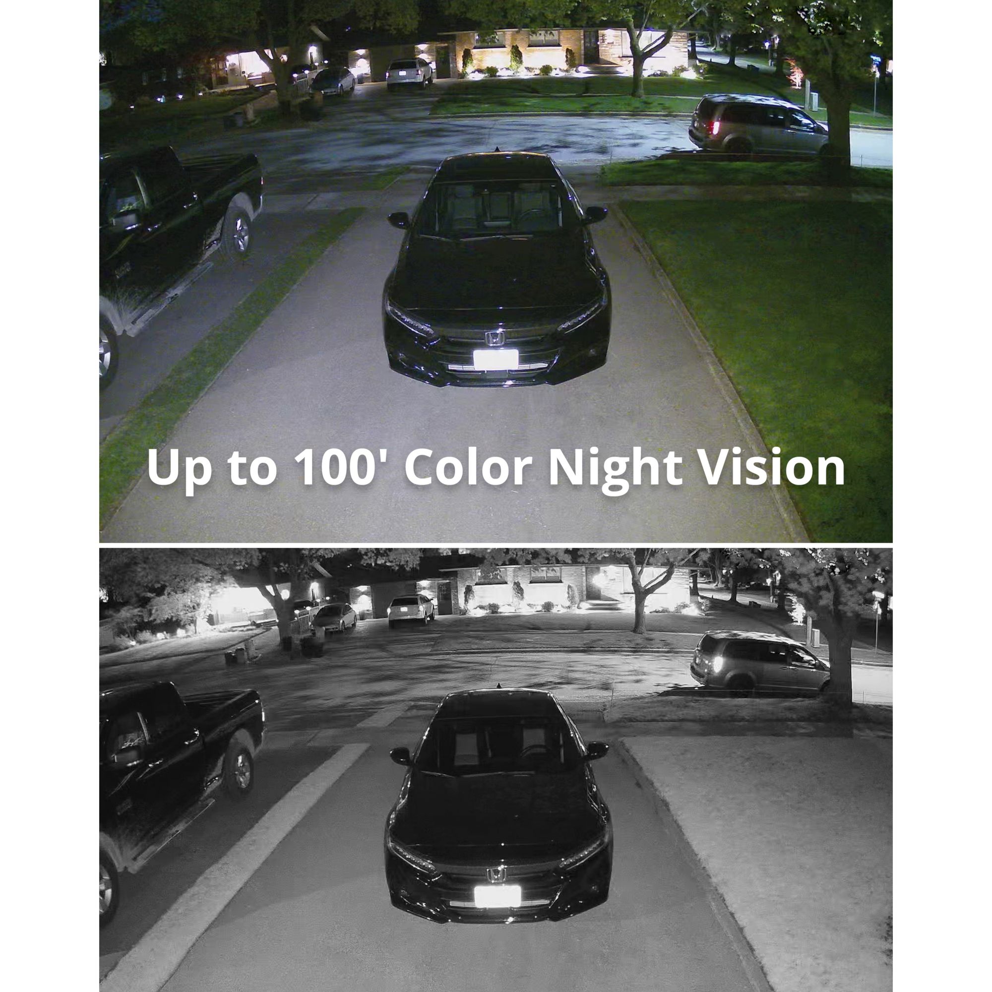 Keep your property protected 24 hours a day with sentinel’s powerful LED spotlight and vivid color night vision even in pitch darkness up to 100’ away