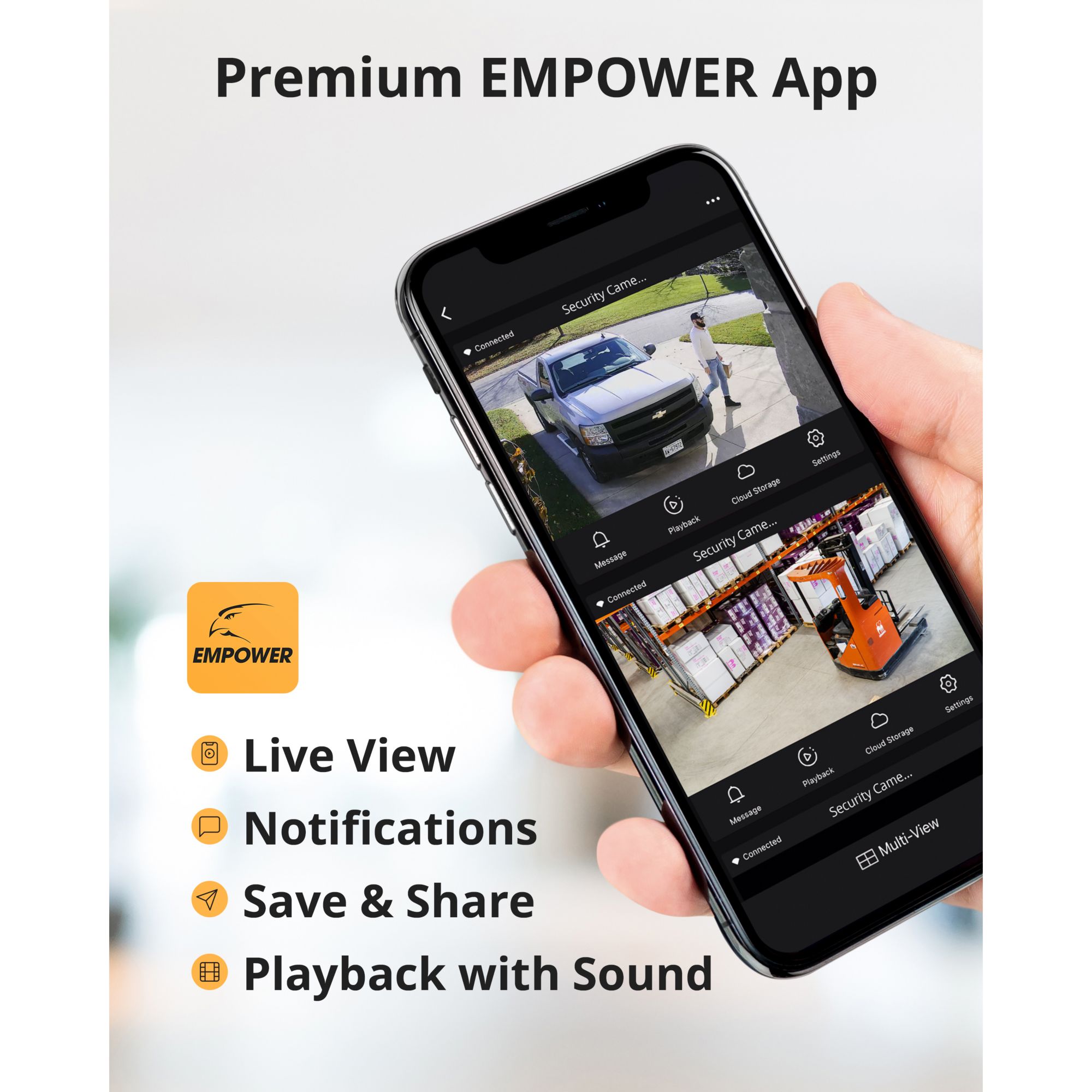 Defender’s empower app provides top-rated security at your fingertips. Search, view and share your footage with ease. Receive critical notifications for your home or business, wherever you may be