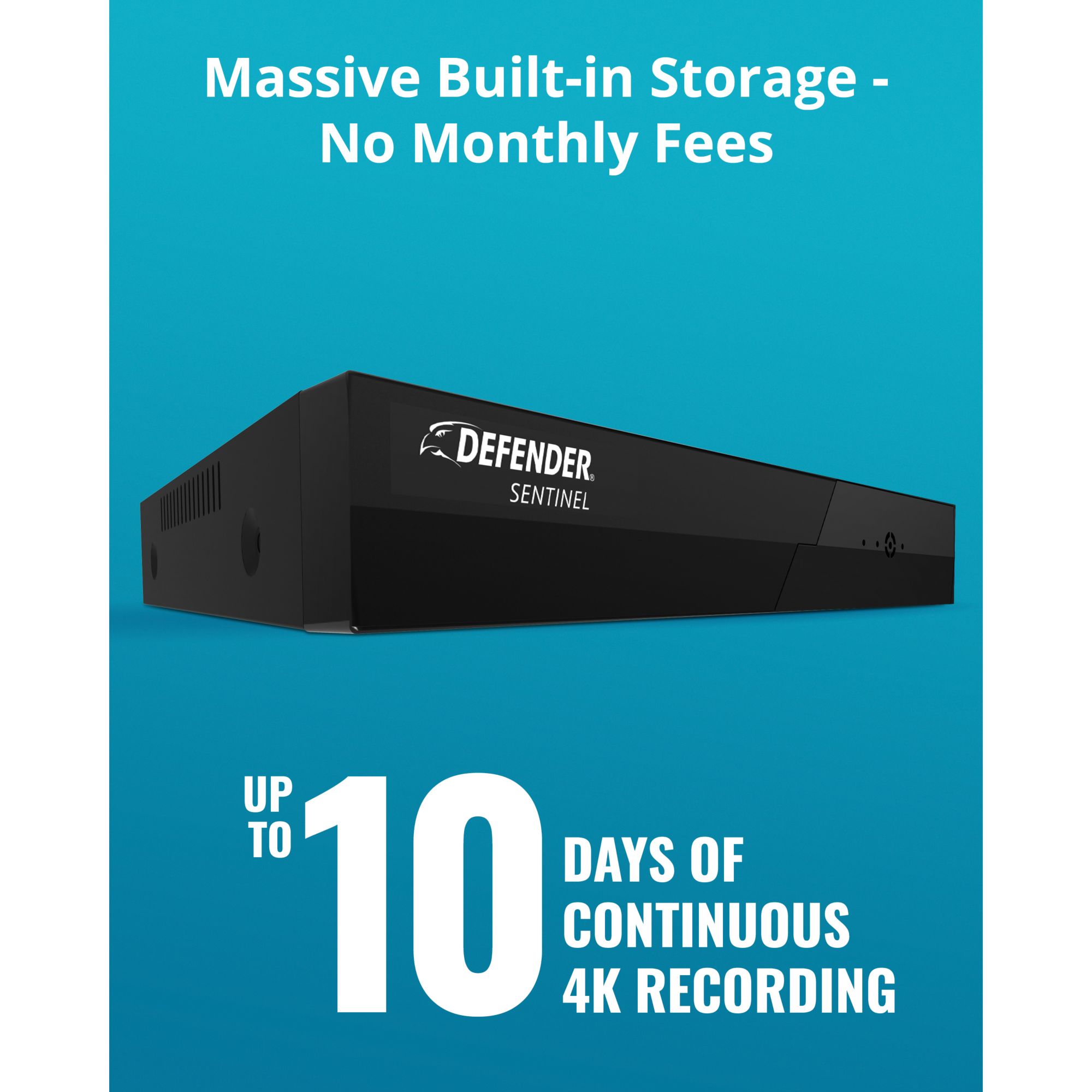 Never pay to store your recordings again. With a tremendous 2TB of built-in storage, record up to 10 days of full 4K ultra-HD recording