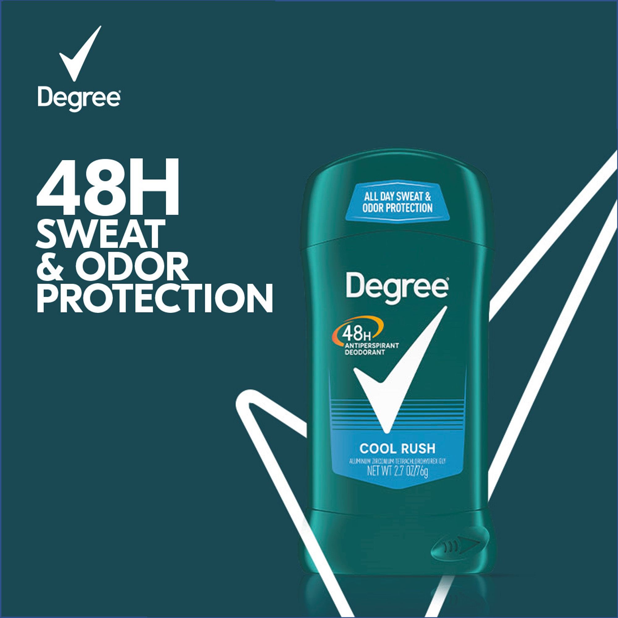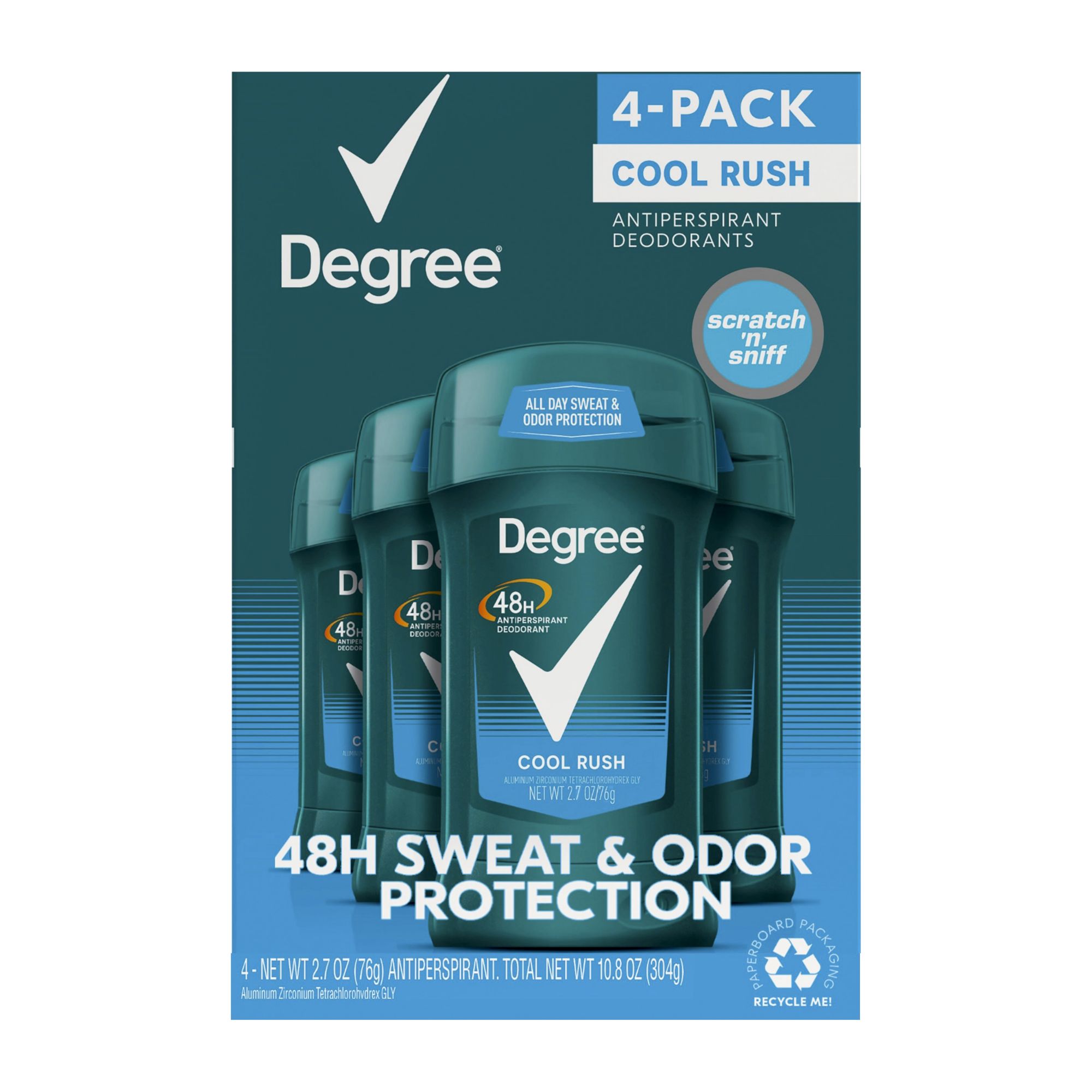 Save up to 21% vs suggested retail price outside of club with this four-pack of Degree Men Cool Rush Antiperspirant Deodorant Invisible Solid for 48 hours of sweat and odor protection. Degree Men Cool Rush Antiperspirant Deodorant delivers the protection you need to keep you feeling dry and fresh for 48-hours of sweat and odor protection, so you can start moving and take on the day. Degree Antiperspirant Deodorant works as hard as you do to keep you feeling fresh and more protected with a refreshing kick of crisp, arctic fresh scent. This powerful antiperspirant responds when you need it most so that you can stay confident without having to worry about slowing down. You can be confident you’ll stay dry, fresh and confident from morning to night. Simply apply and get moving.