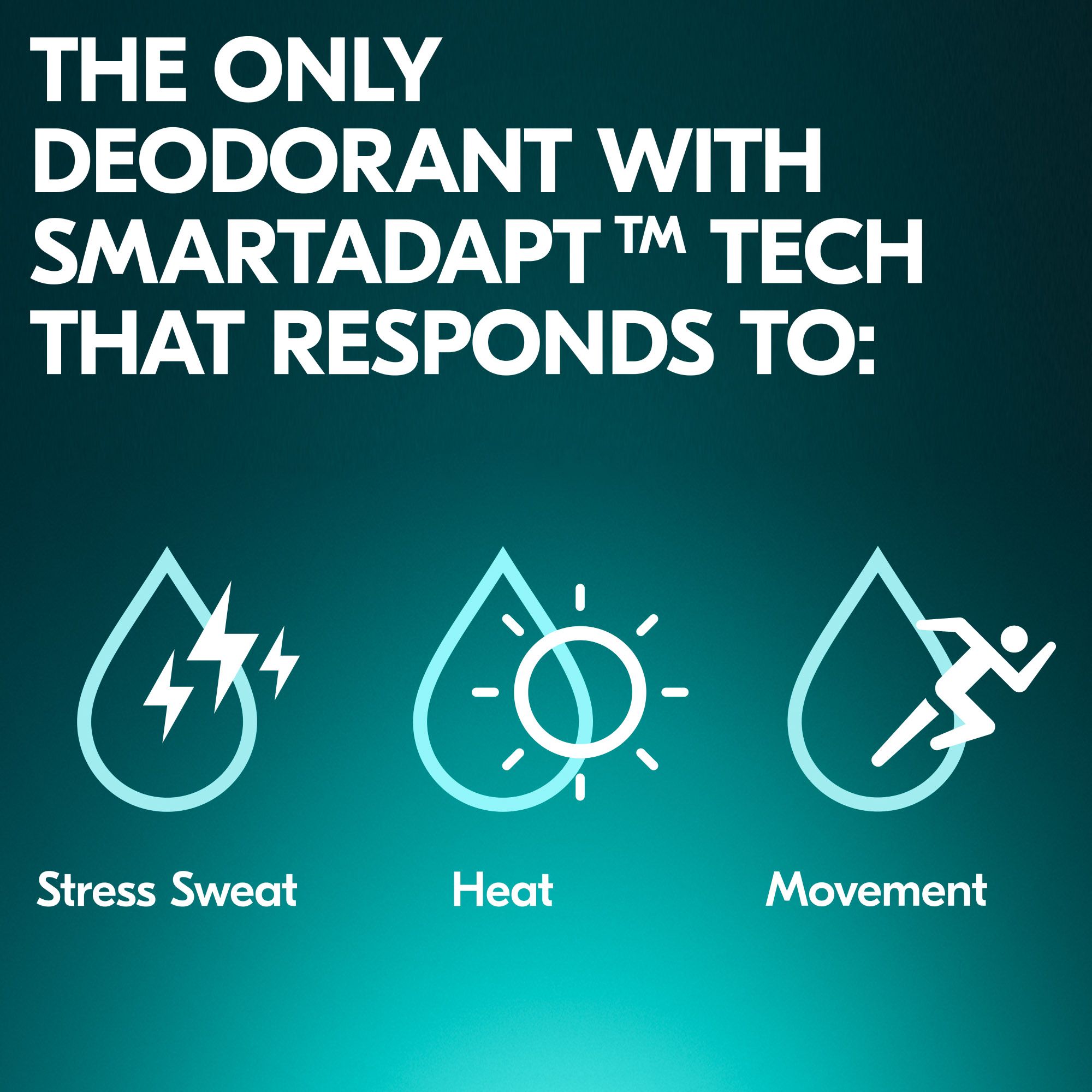 The only deodorant with antiperspirant SmartAdapt Tech that responds to stress, heat, and movement for unlimited sweat and odor protection (up to 96H)