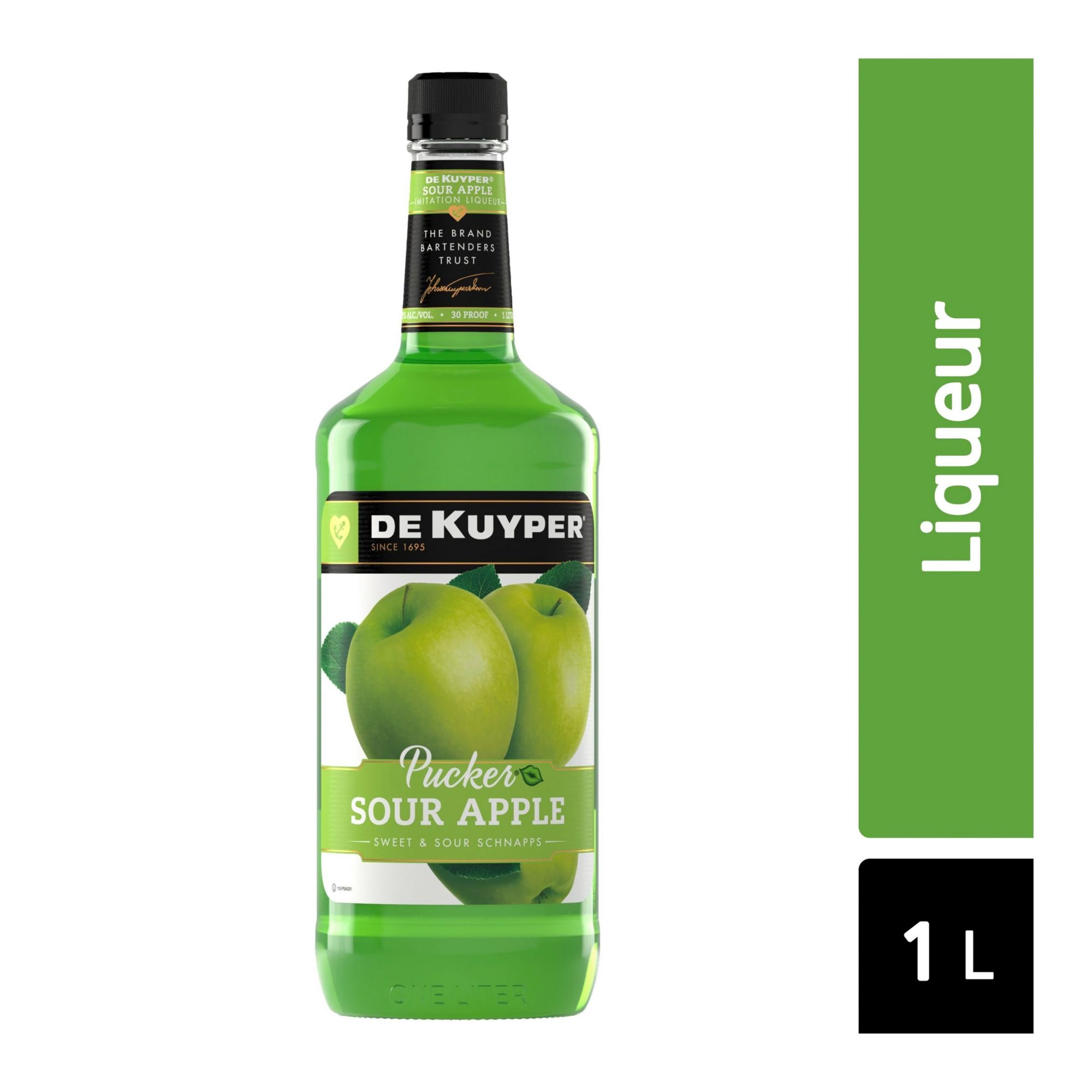 DeKuyper Pucker Sour Apple Schnapps Liqueur puts the sour apple in the world famous Sour Appletini. Add a splash of bold flavor to your cocktails with this fruity liqueur. A sweet and sour sensation, this liqueur bursts with sweetness followed by a mouth-puckering sourness. Great for mixing, Pucker Sour Apple makes a great foundation for green apple inspired martinis, punches, daiquiris, and more. Since 1695, DeKuyper has been the brand bartenders trust to add color, flavor, and fun to any cocktail.