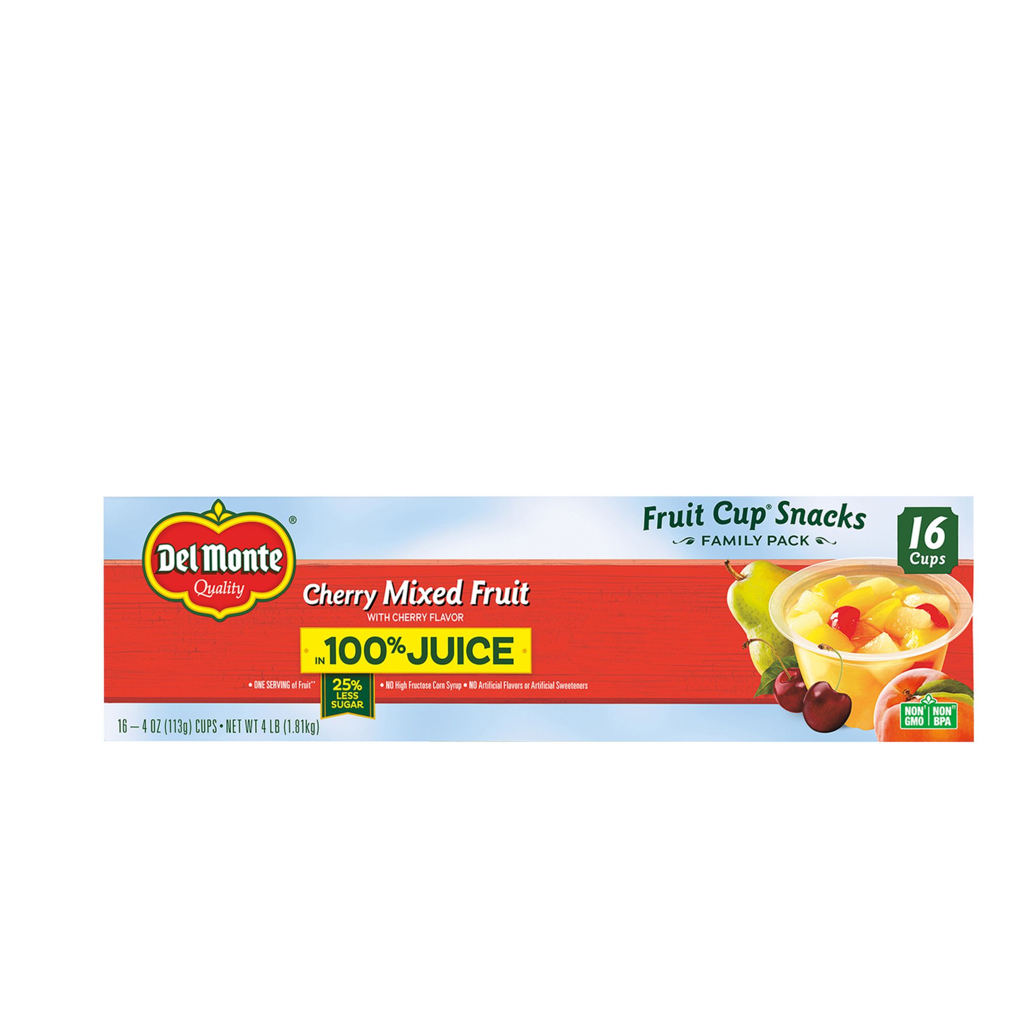 Made with bite-sized pieces of peaches, pears and cherries in a light syrup Offers a great source of Vitamin C Makes a perfect on-the-go snack Includes sixteen 4 oz. fruit cups