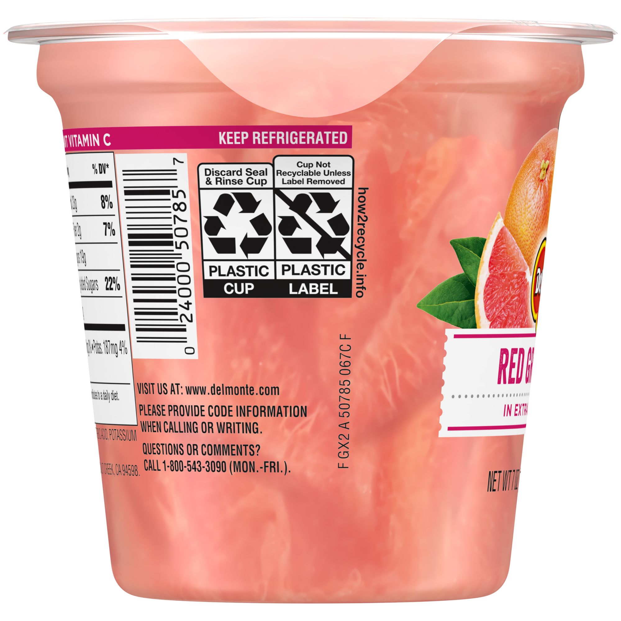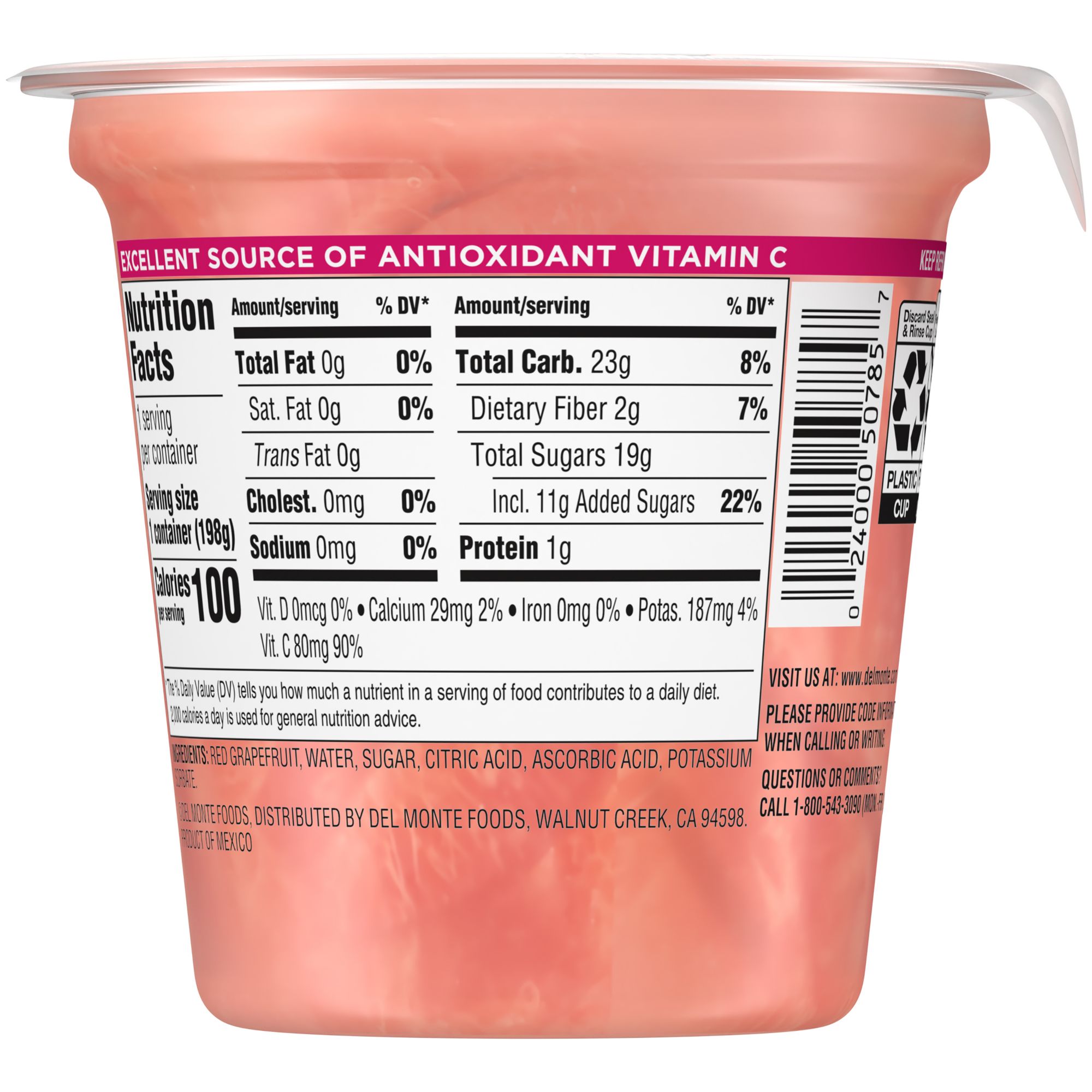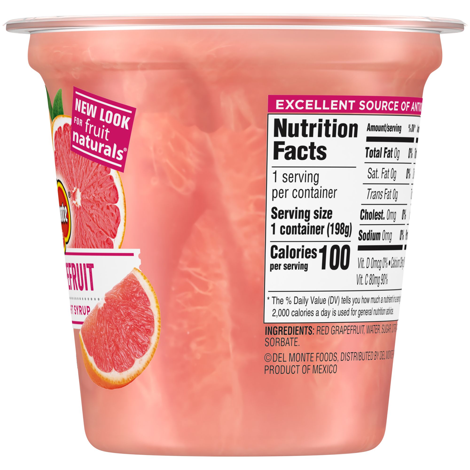 With no skins or seeds, Del Monte Fruit Naturals Red Grapefruit Cups let you enjoy a healthy and tasty treat any time of the day. The cups are filled with red grapefruit and contain no artificial flavors. These cups are an easy addition to a weekday breakfast, or as a mid-day snack.