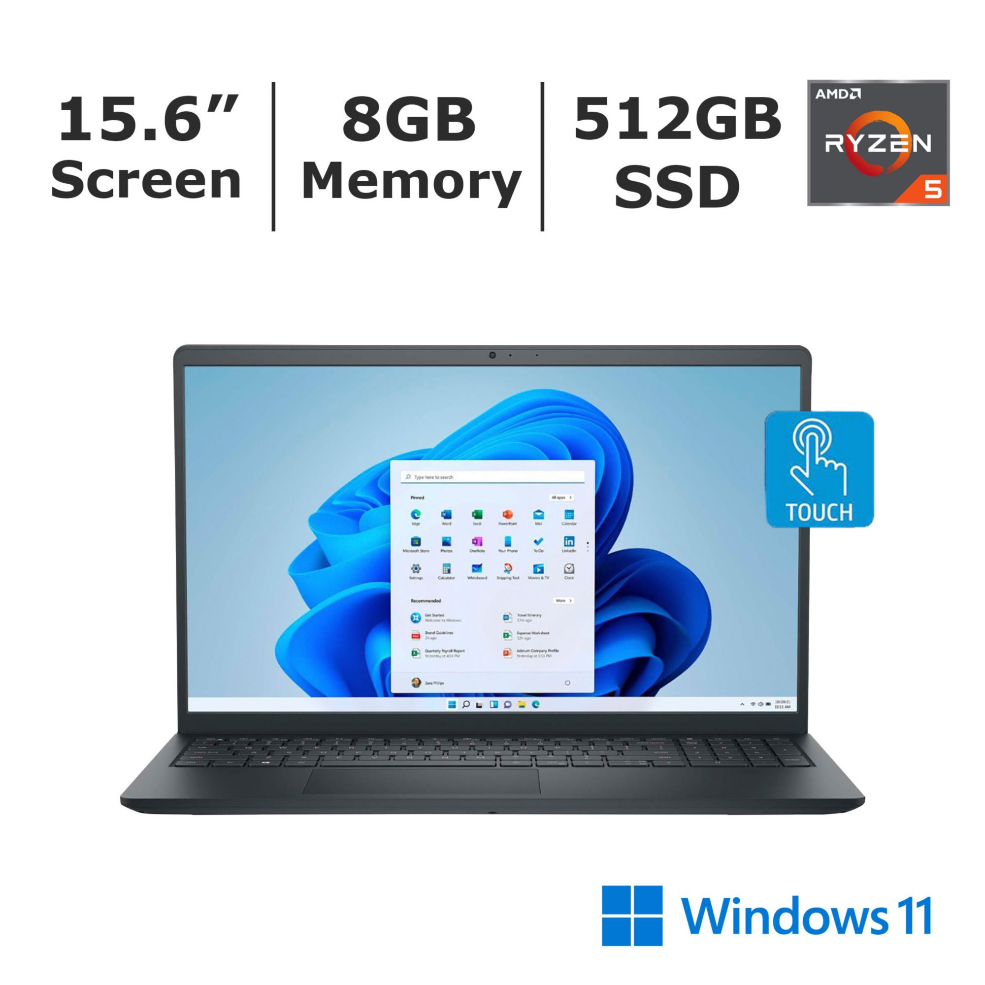 Dell Inspiron 15.6" Laptop, AMD Ryzen 5 Processor, 8GB Memory, 512GB SSD, Integrated Graphics