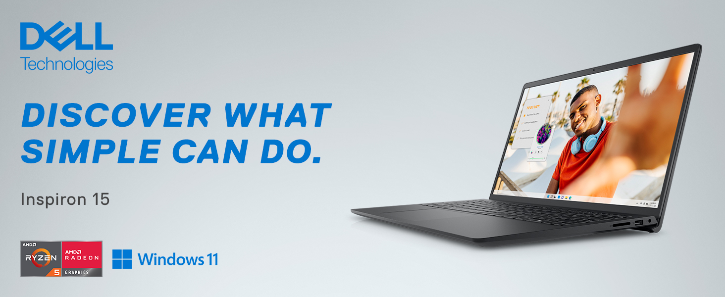 The Inspiron 15 is as stylish on the outside as it is efficient on the inside. Built with the latest AMD Ryzen™ processors, you can finish your to-do list in no time.Stay connected to what you love