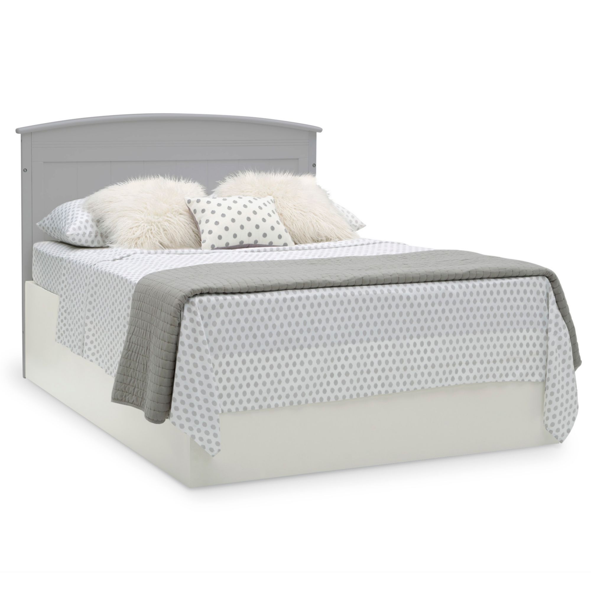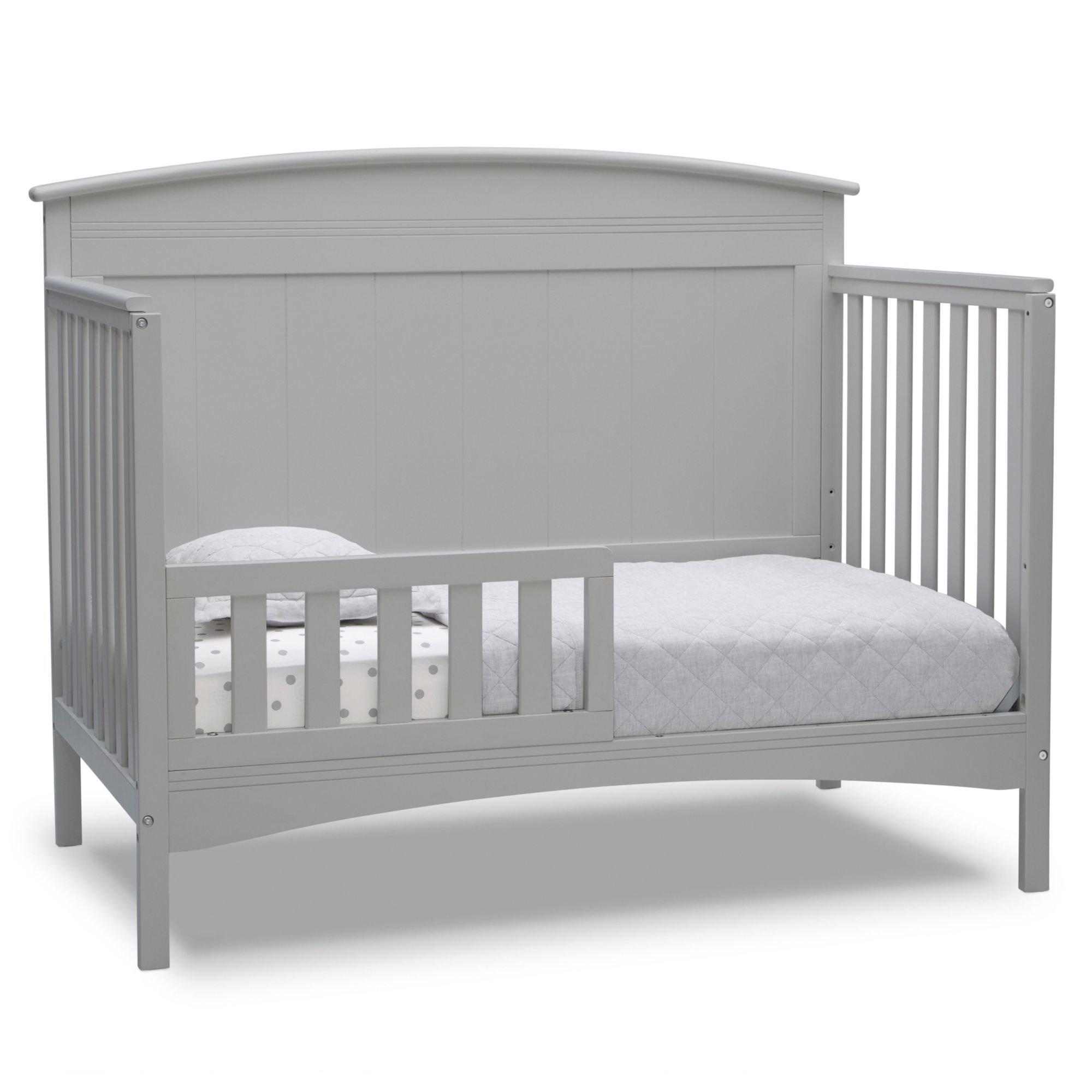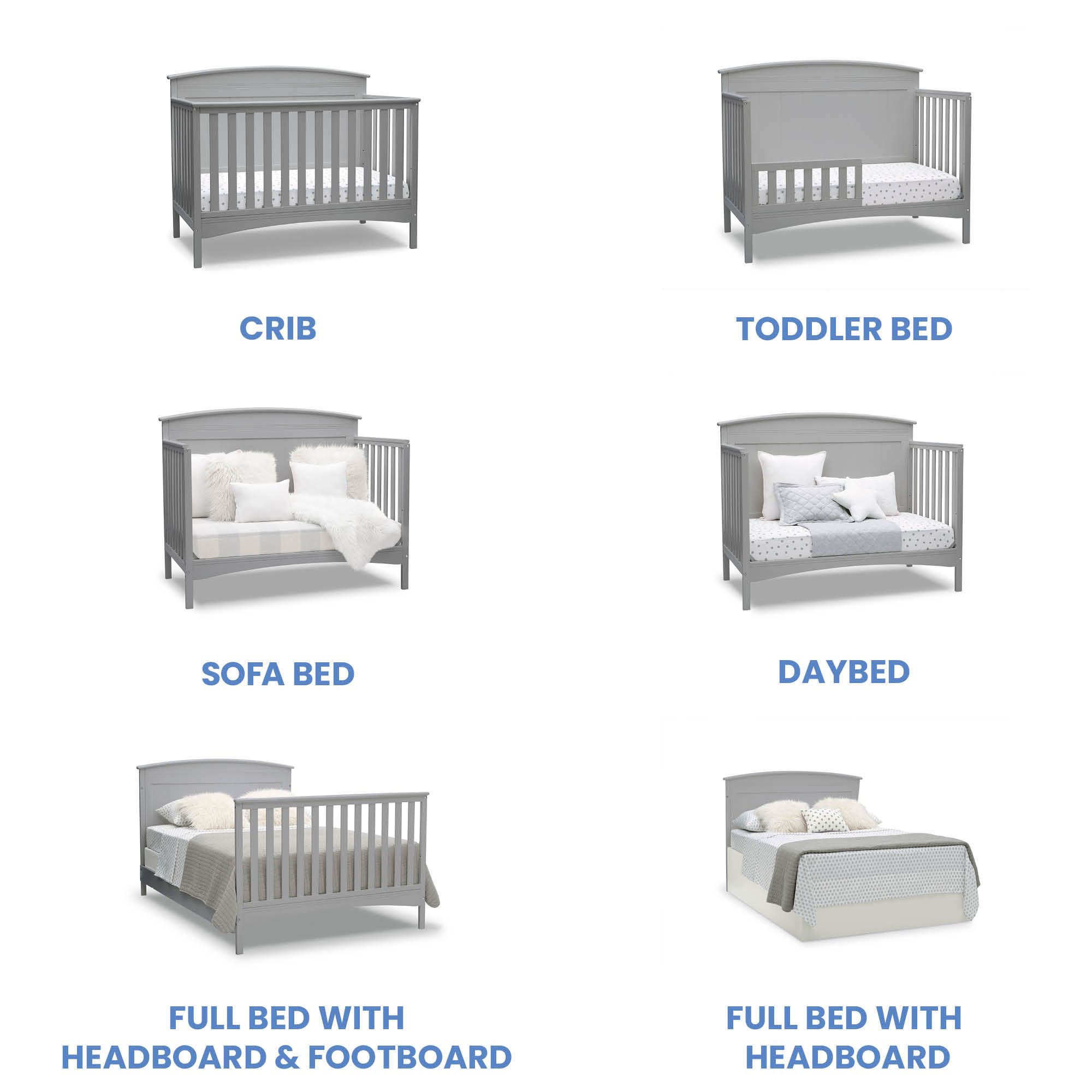 Converts from a crib to a toddler bed, to a daybed and to a full-size bed with headboard and footboard (daybed rail included; toddler guardrail and Delta Children's full-size bed rails sold separately)