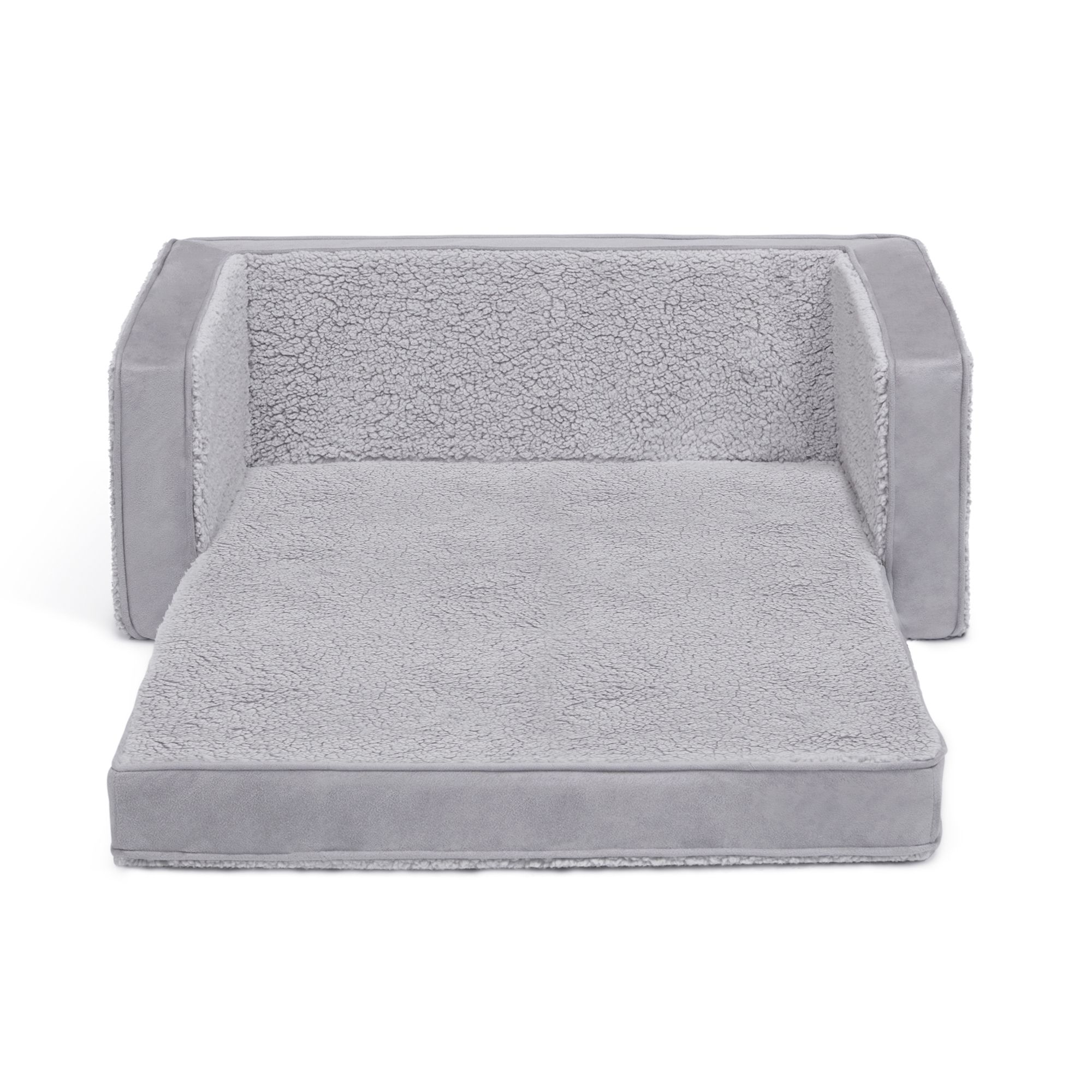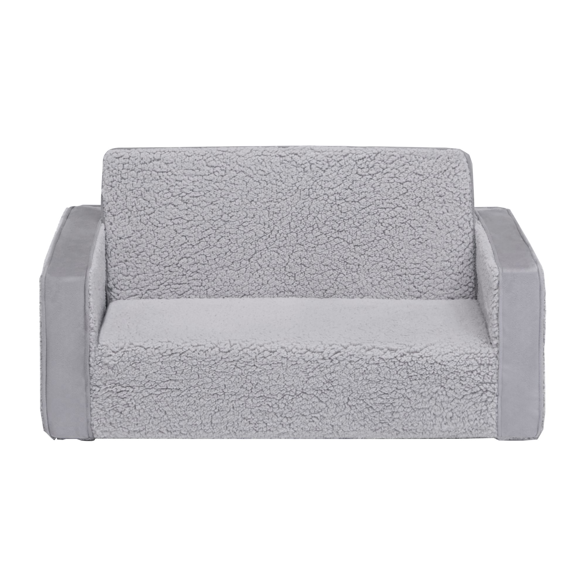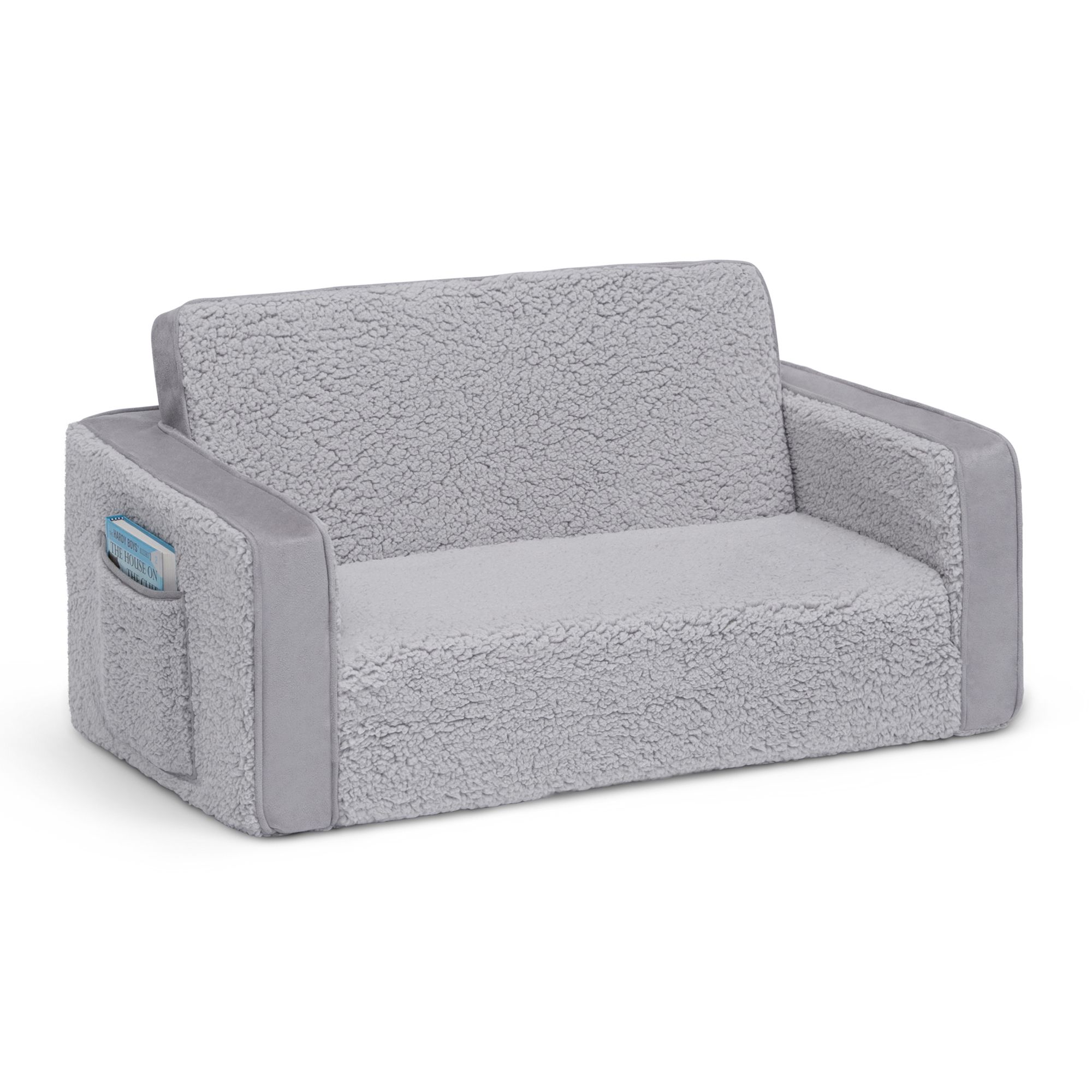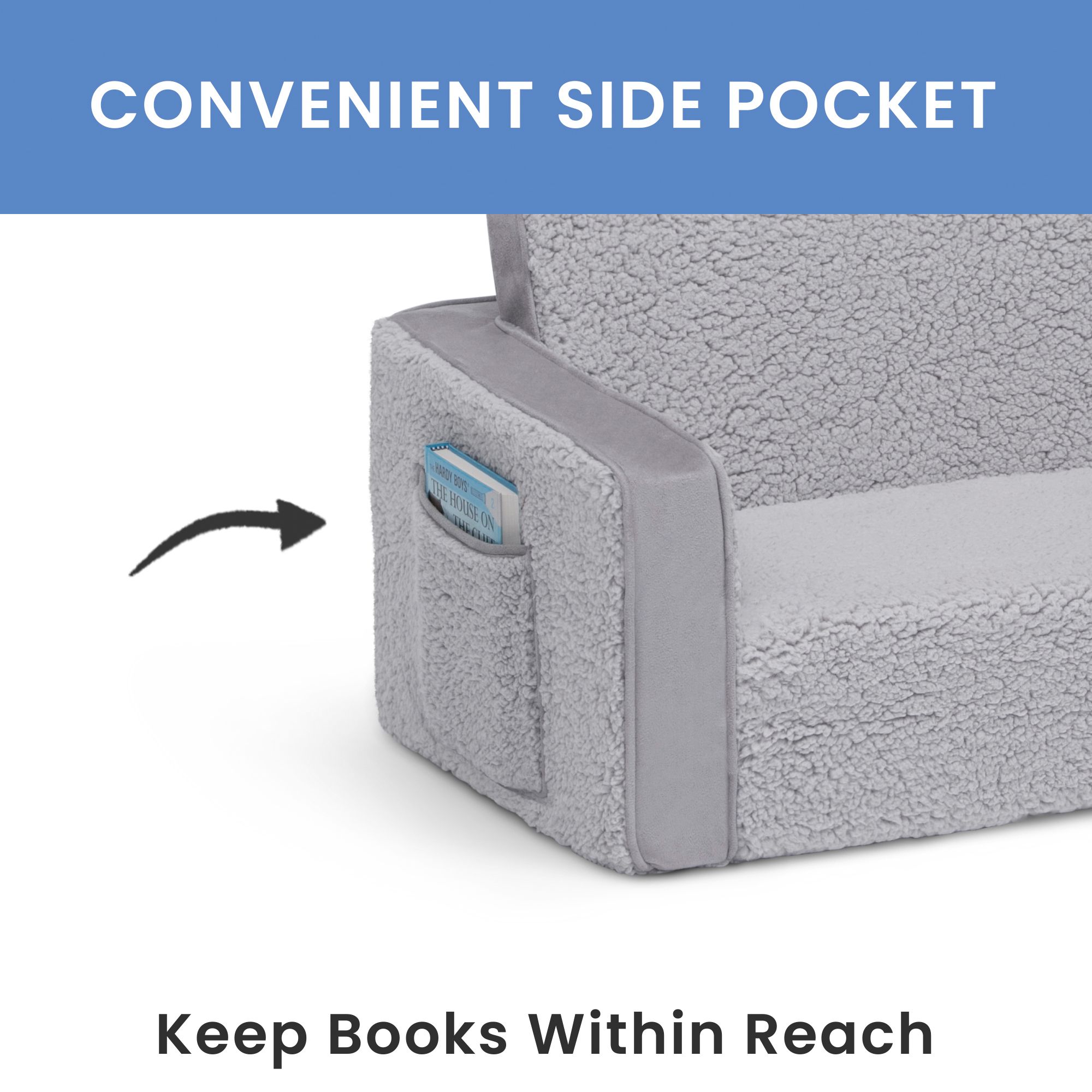 The Cozee Flip-Out Sherpa 2-in-1 Convertible Sofa to Lounger by Delta Children is a cozy couch by day, laid-back lounger by night. This convertible sofa easily flips open to reveal multiple ways for your child to relax. They’ll love to sit and read or watch their favorite movies on the sofa, but when it’s time for a nap, this seat folds out into a comfy sleeper bed. Big enough to fit three small kids comfortably in sofa mode, it’s light enough to move around the house and is ideal for your children to share during playtime or sleepovers. The super-soft sherpa and suede slipcover with easy-to-reach side pocket creates the ultimate retreat for your little one. The supportive foam construction will keep its shape and provides all-day comfort. Designed to ship in a super-small box, this lightweight foam kids’ sofa and lounger may take up to 24 hours to fully expand once unboxed. Machine-washable slipcover zips off for easy cleaning.