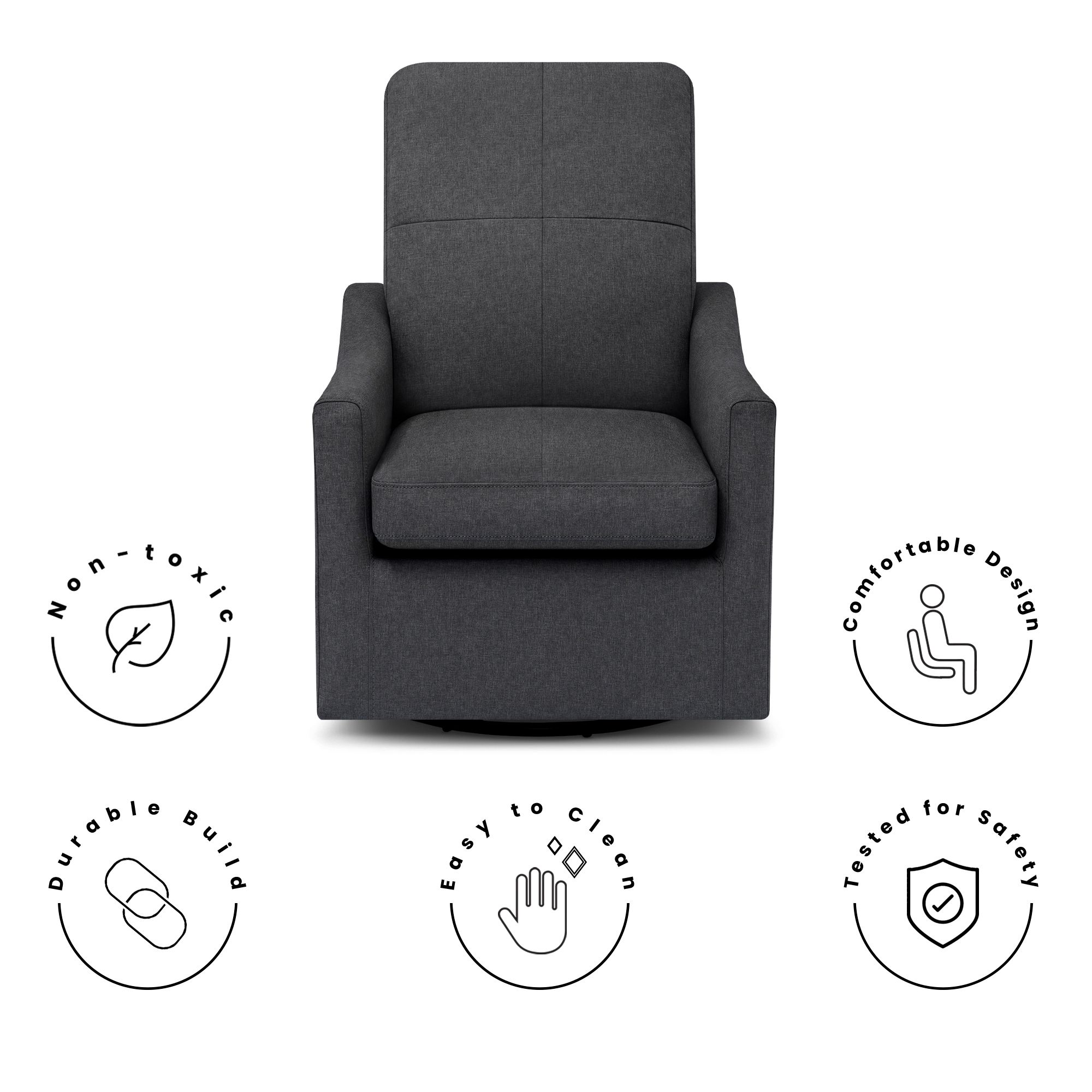 With its plush fill and lush velvet upholstery, the Kenwood Nursery Glider is equal parts lounge-worthy and statement-making. The glider’s swiveling and gliding base offers the ultimate comfort during those early mornings and late nights with your baby. Plus, this chair is designed to naturally move from the nursery to the living room, master bedroom, or any other room that needs a cozy spot to relax.