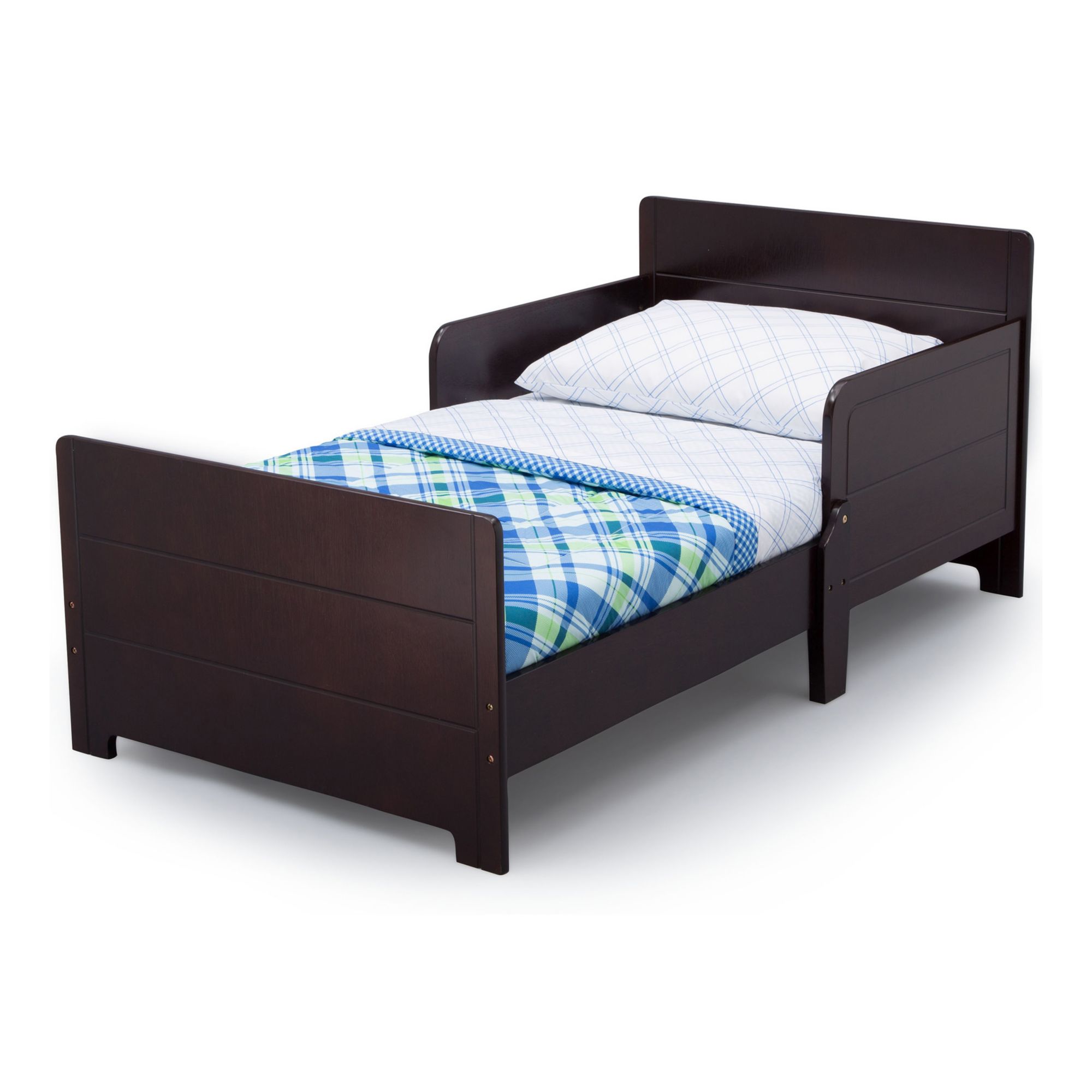A bed designed just for them, the Delta Children MySize Toddler Bed helps make the transition from crib to "big kid" bed easy. This toddler bed features clean, crisp lines for a modern look that makes it a great focal point for your child's first room. Guardrails on both sides create a snug and secure toddler bed that's easy for your little one to get in and out of on their own.