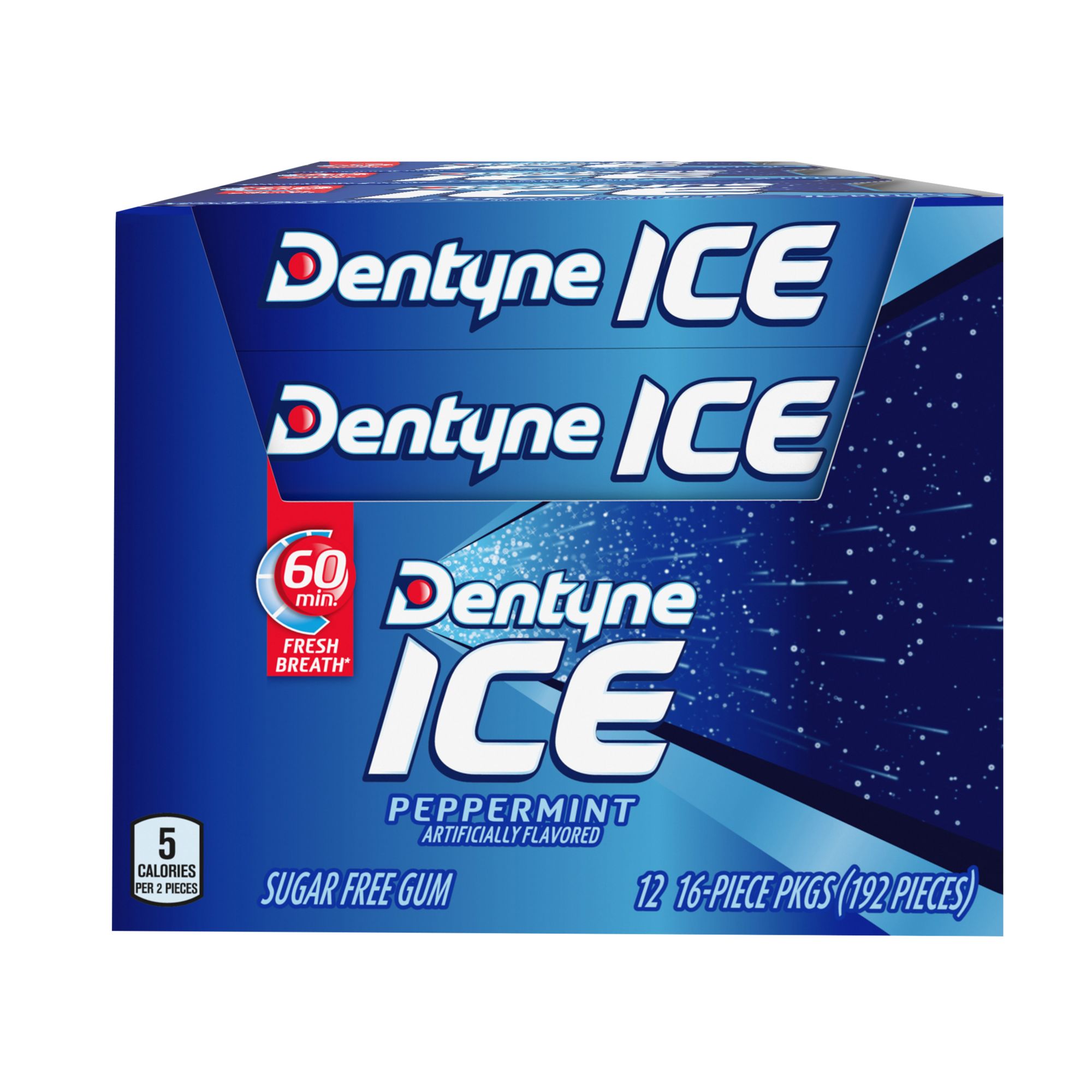 Be prepared anytime, anywhere with great-tasting Dentyne Ice gum. Dentyne Ice Peppermint Gum freshens breath with a bold minty flavor for up to 60 minutes. This package includes 12 packs of 16-piece gum.