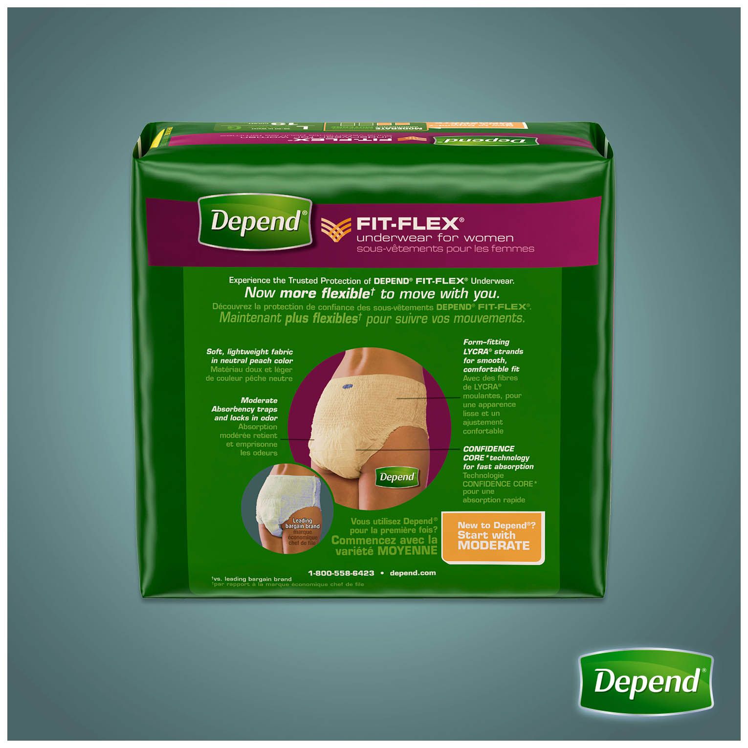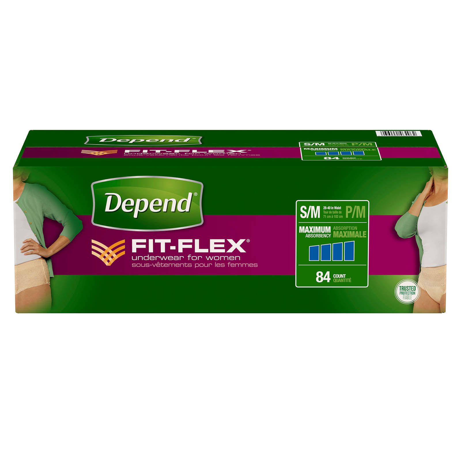 Depend FIT-FLEX Incontinence Underwear for Women is more flexible to move with you unlike bulky adult diapers Confidence Core technology for fast absorption with overnight protection that traps in odor Sensitive bladder protection that is specially made to fit the shape of a woman with an underwear-like waistband and oval-cut leg openings Maximum absorbency disposable underwear in a soft peach color Depend incontinence products for women ship discreetly in a plain corrugate box and are FSA-eligible in the US only Includes 84 pairs