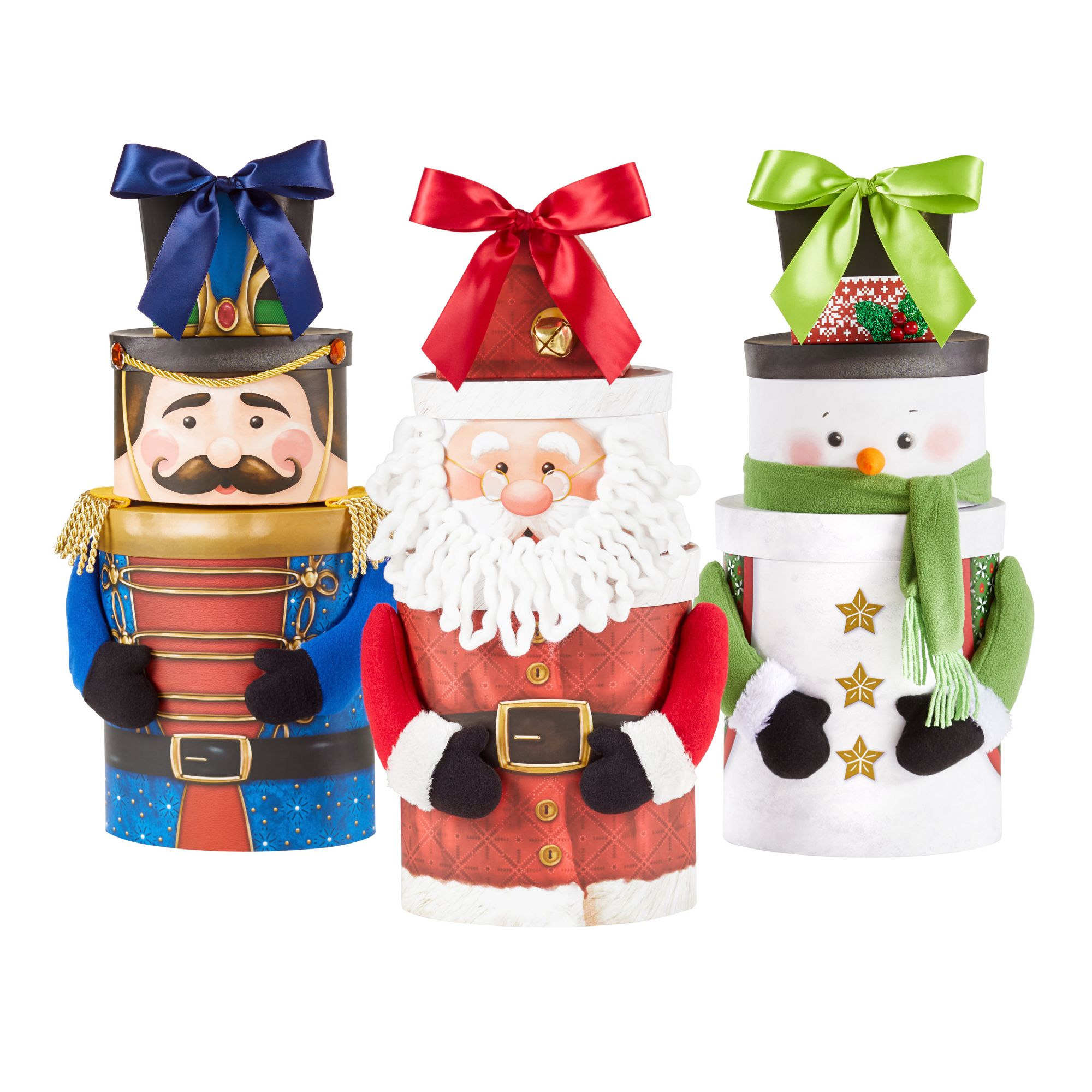 This adorable three piece Holiday Character Tower is perfect for holiday decor, after the 10 gourmet treats are gone.