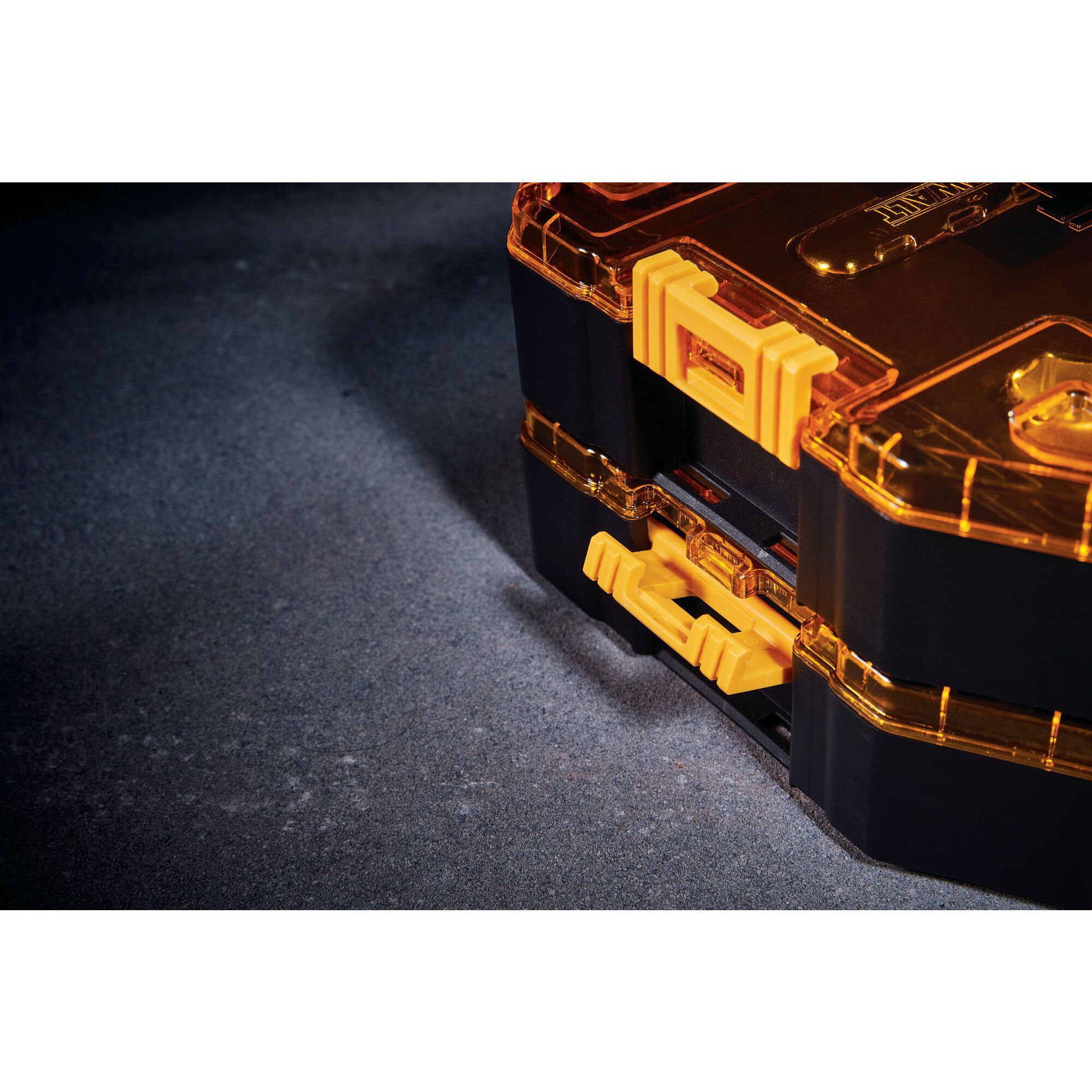 This 34-piece Socket Set is a versatile set that can be easily transported between work areas. This set features a removable inner tray designed to fit in most tool chests with standard height drawers. It also has side hinges that interlock with similar DEWALT® mechanics tool sets for an organized storage solution. Included in this set is a 72-tooth-count ratchet, great for accessing tough-to-reach spots found on a worksite. The sockets and wrenches have hard stamped markings to easily identify the tool you need.
