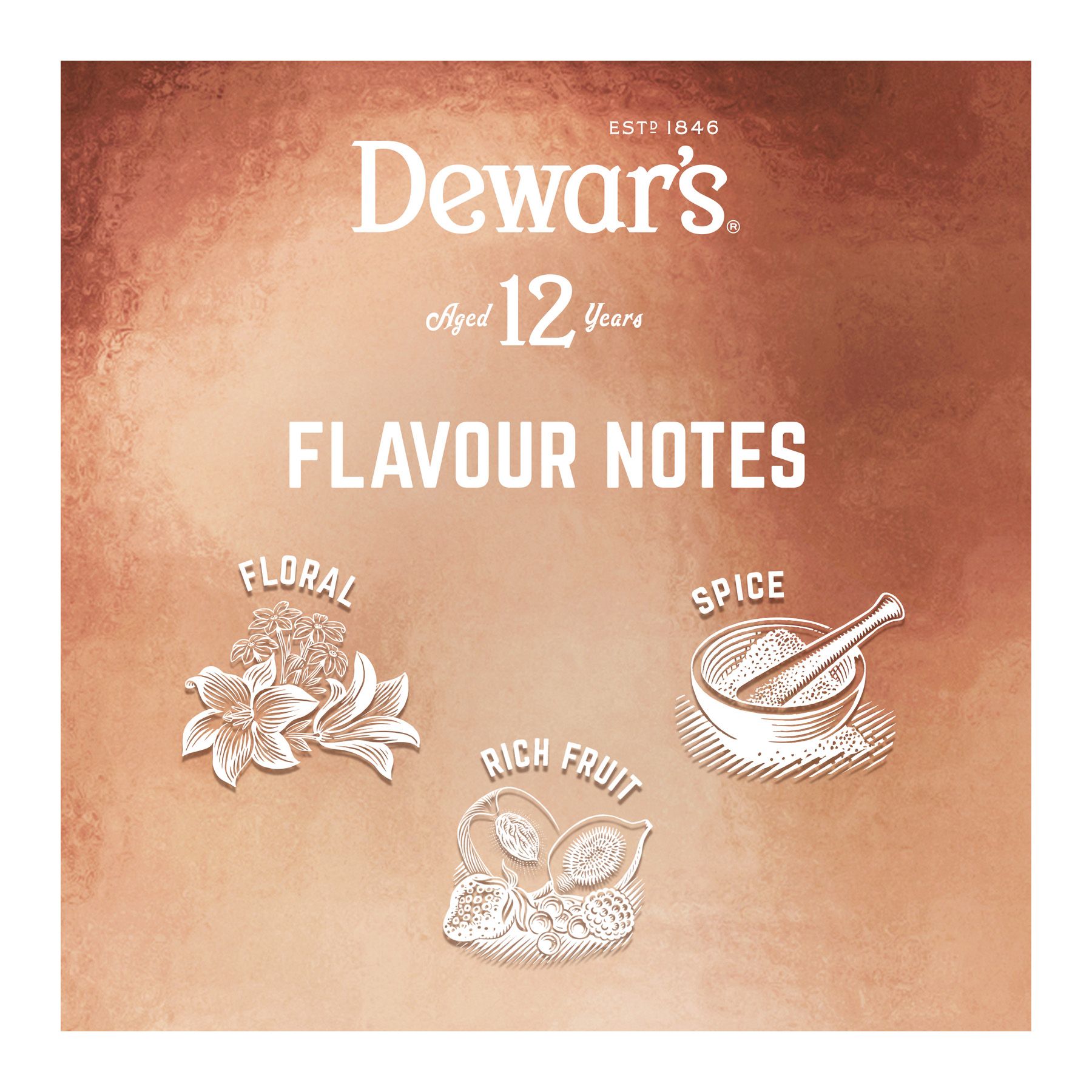 Dewar's 12 Year Old Blended Scotch Whisky is double aged for extra smoothness