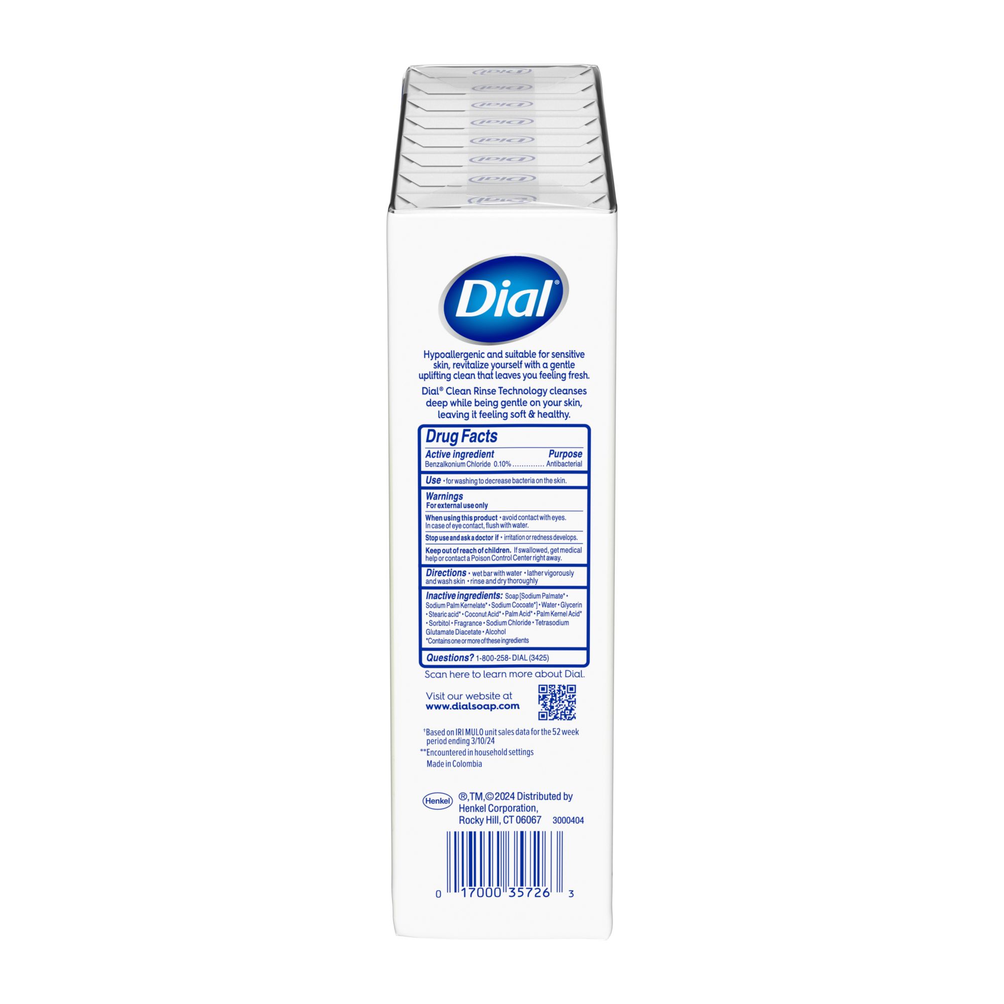 Antibacterial and sensitive Aloe scent bar soap. Hypoallergenic and suitable for sensitive skin, revitalize yourself with a gentle uplifting clean that leaves you feeling fresh. Dial CleanRinse Technology cleanses deep while being gentle on your skin, leaving it feeling soft and healthy. Dermatologist tested and approved as cruelty free under the Leaping Bunny Program. This package contains (16) four ounce bars of soap.