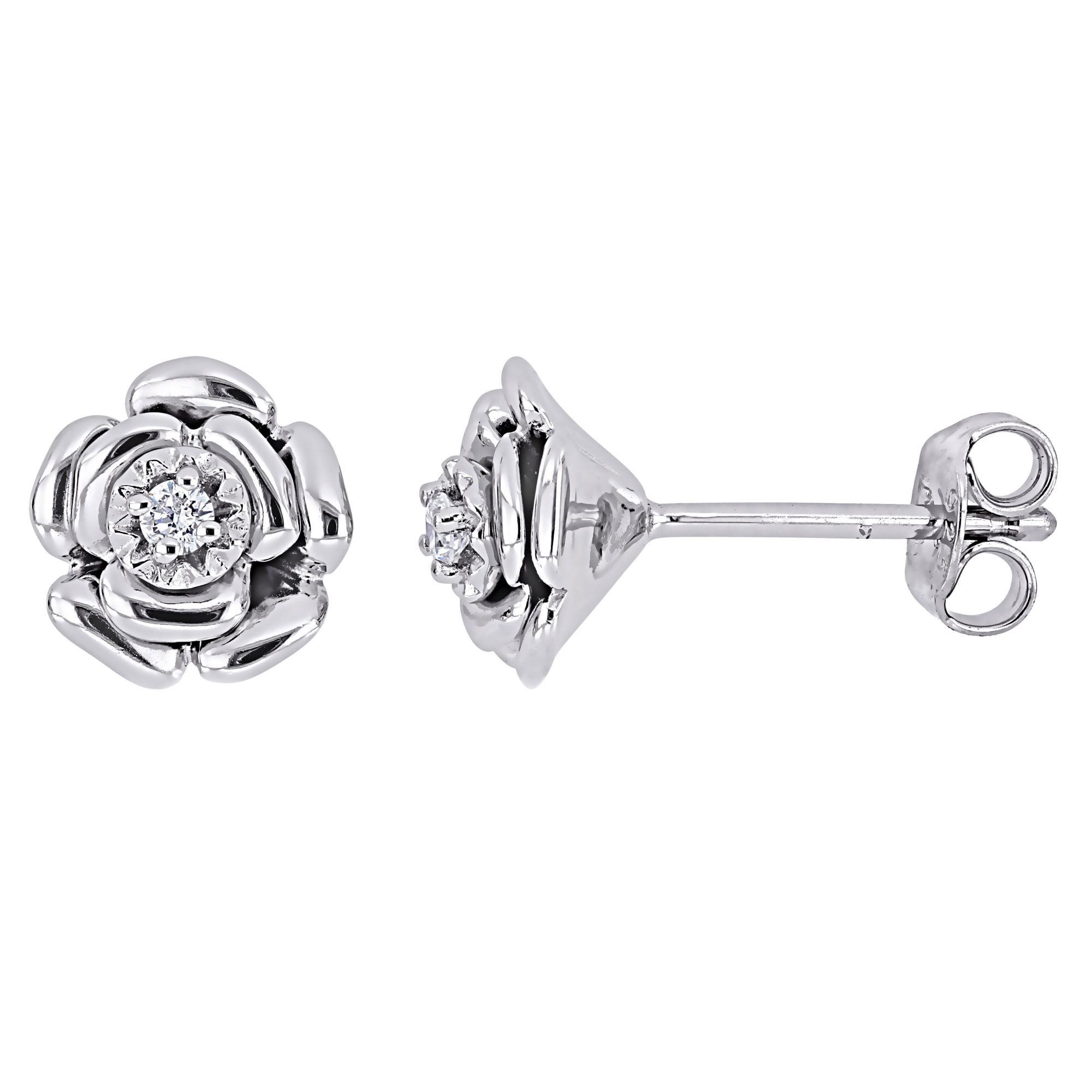 Diamond Accent Floral Stud Earrings in Sterling Silver