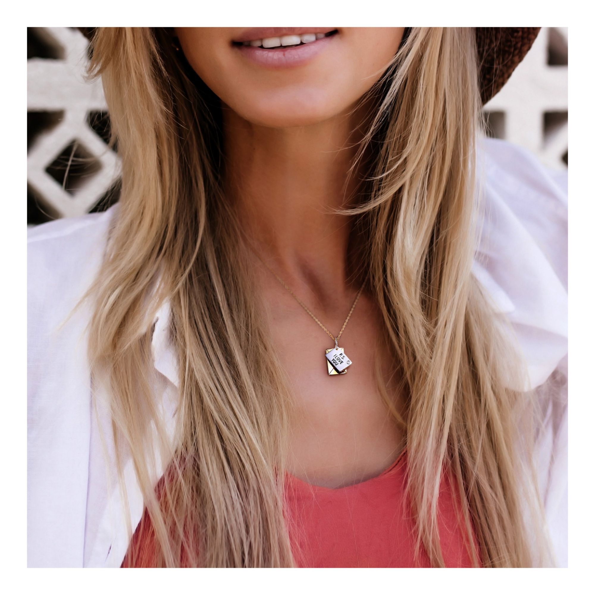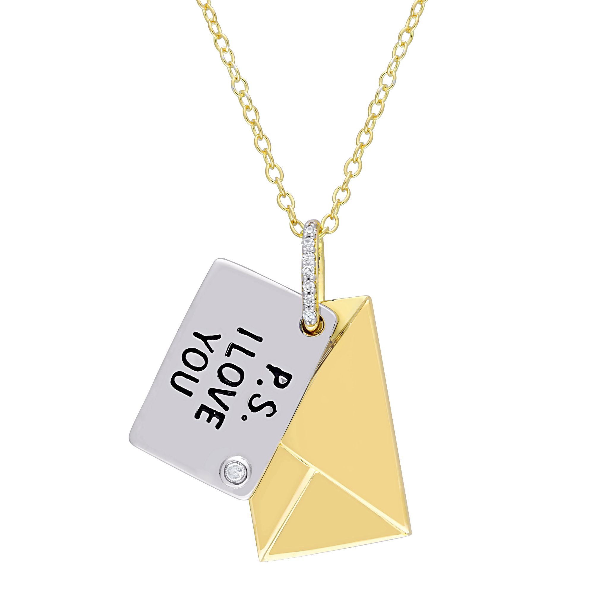 Diamond Accent Letter Envelope "I Love You" Charm Necklace in Yellow Plated Sterling Silver