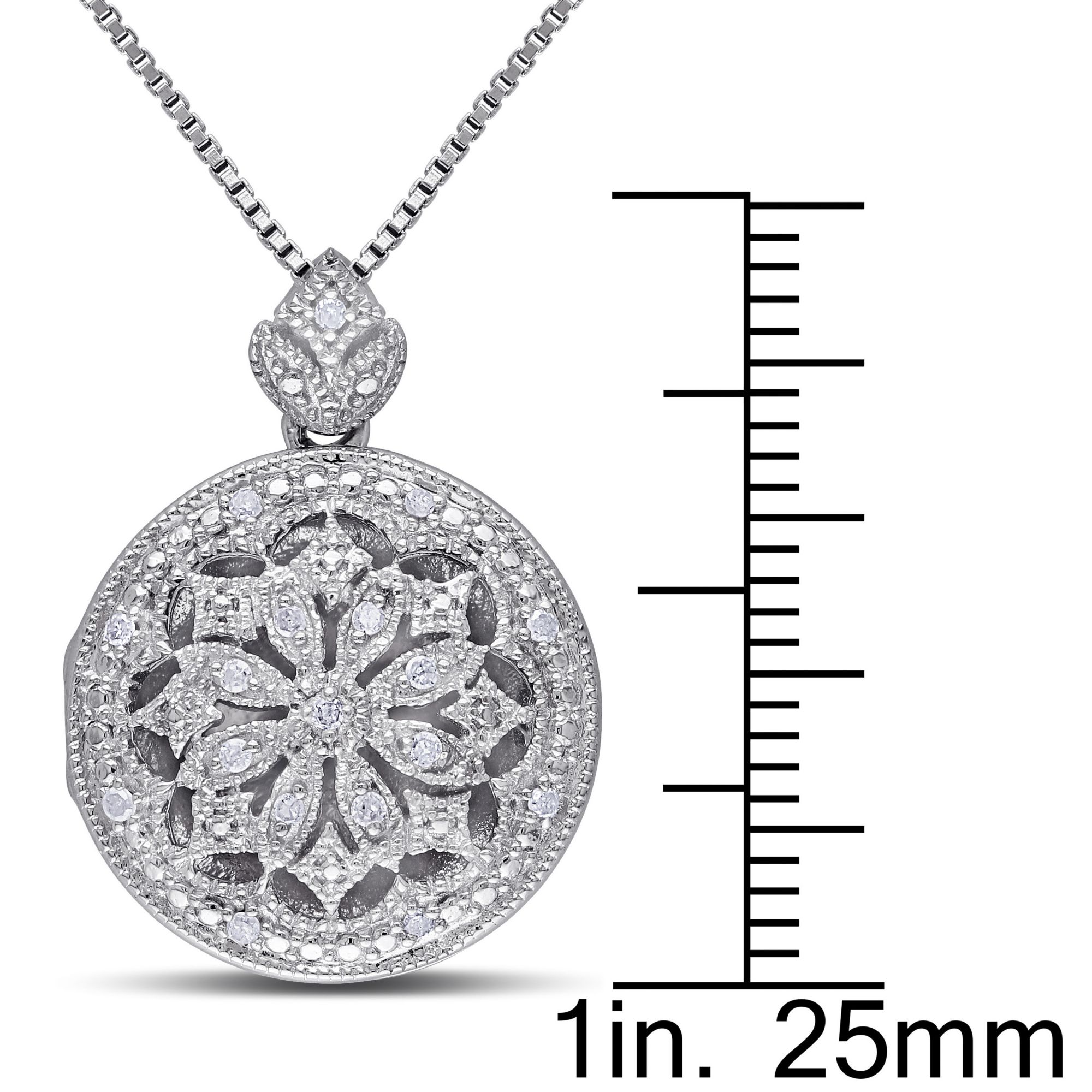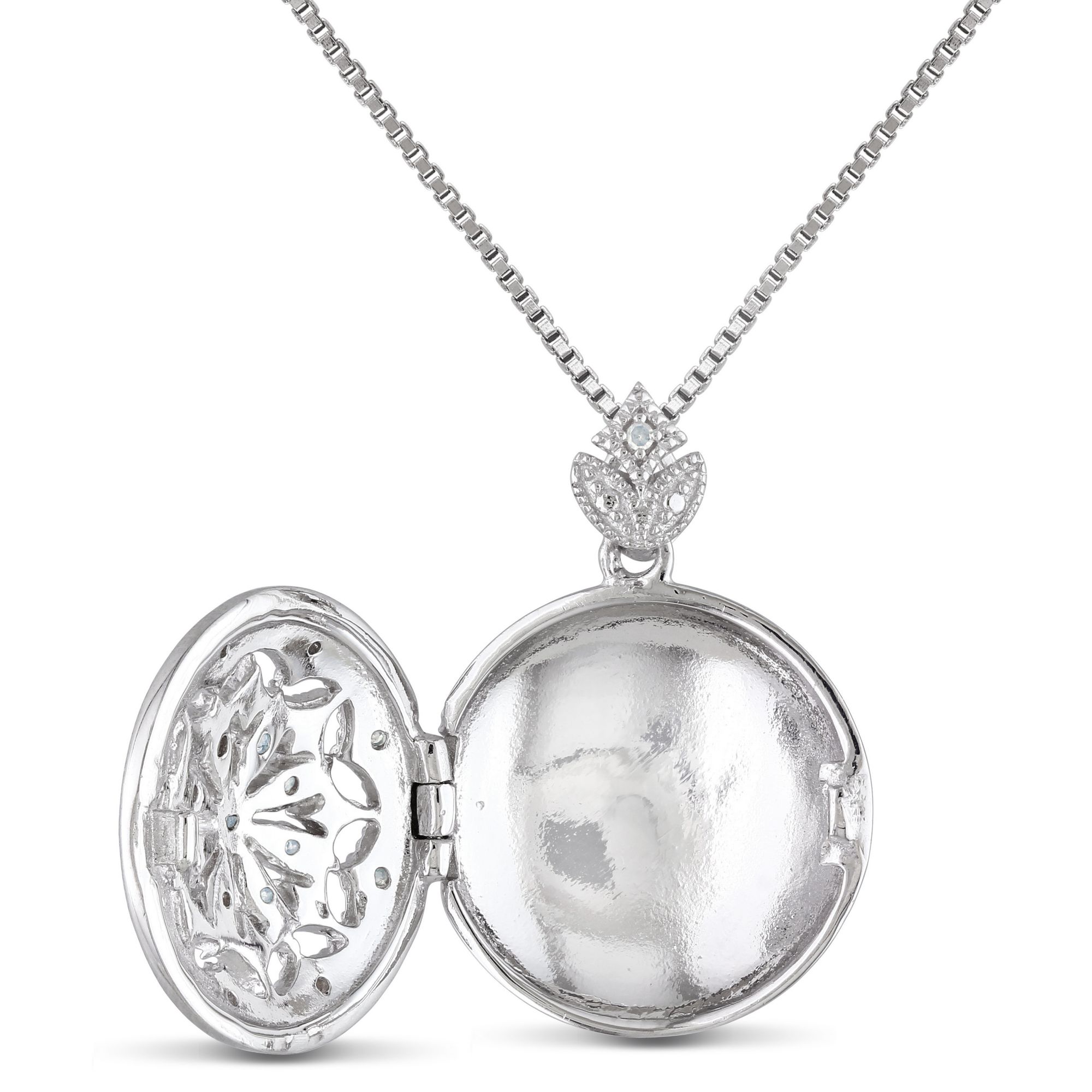 Diamond Accents Floral Vintage Locket Pendant with Chain in Sterling Silver