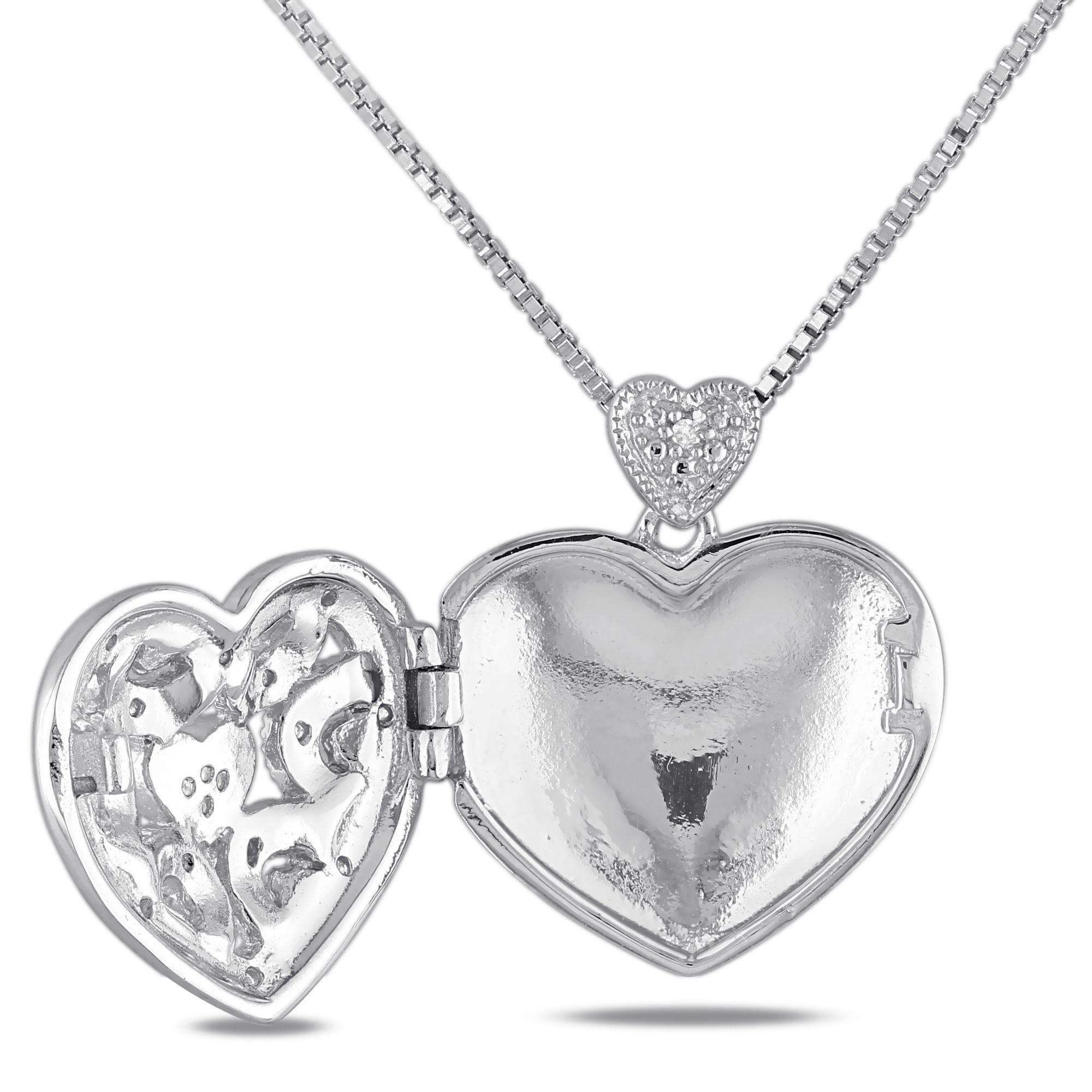Diamond Accents Heart Locket Pendant with Chain in Sterling Silver