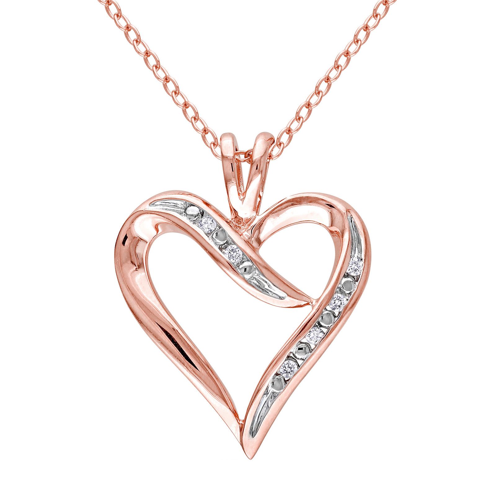 Diamond Heart Pendant with Chain in Pink Plated Sterling Silver