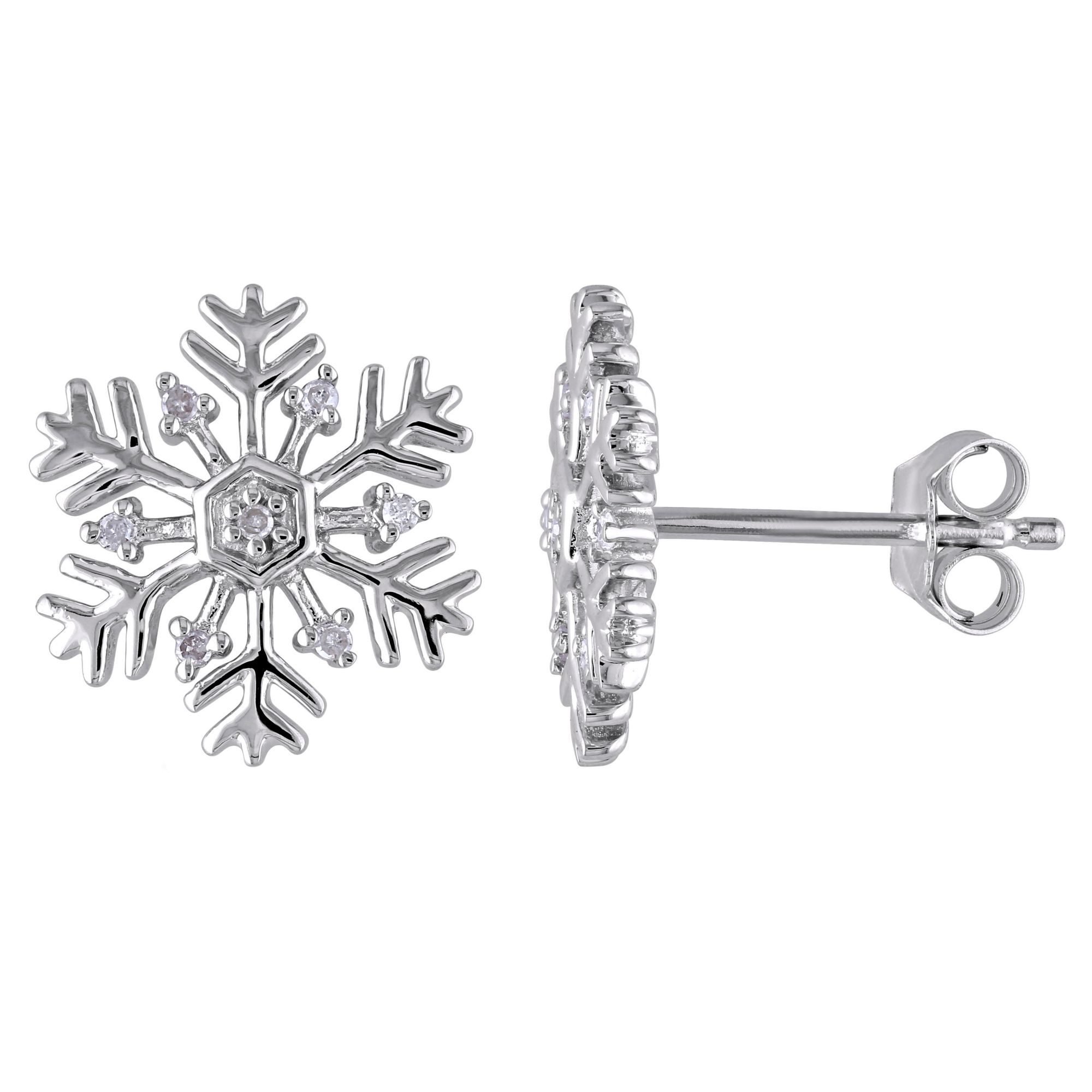 Diamond Snowflake Stud Earrings in Sterling Silver