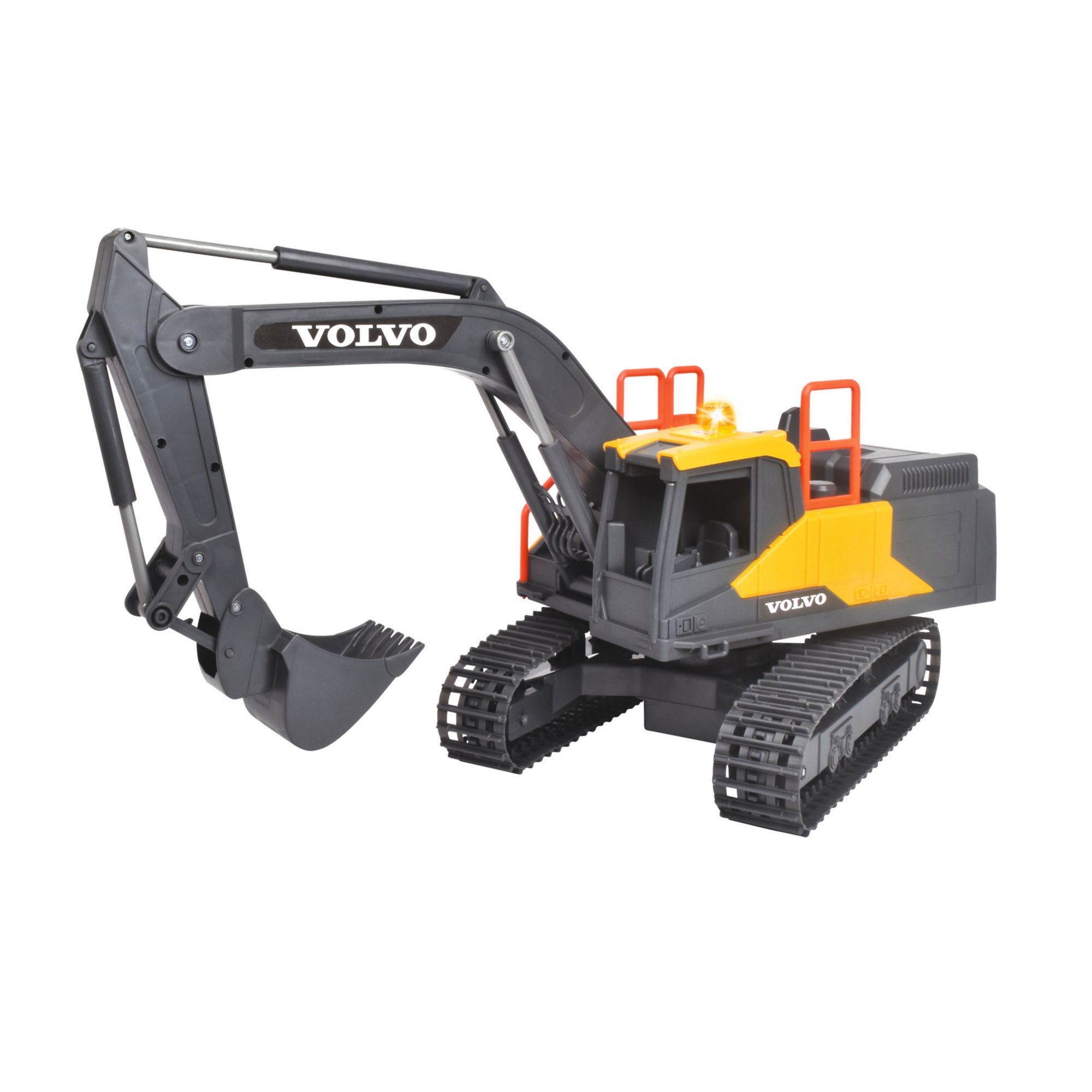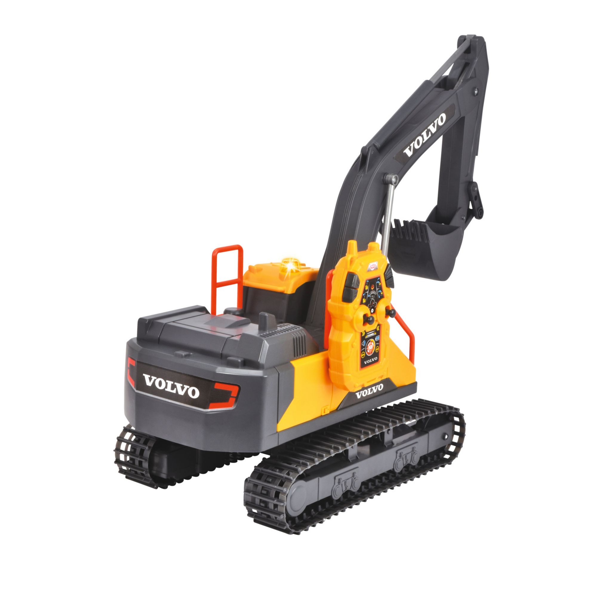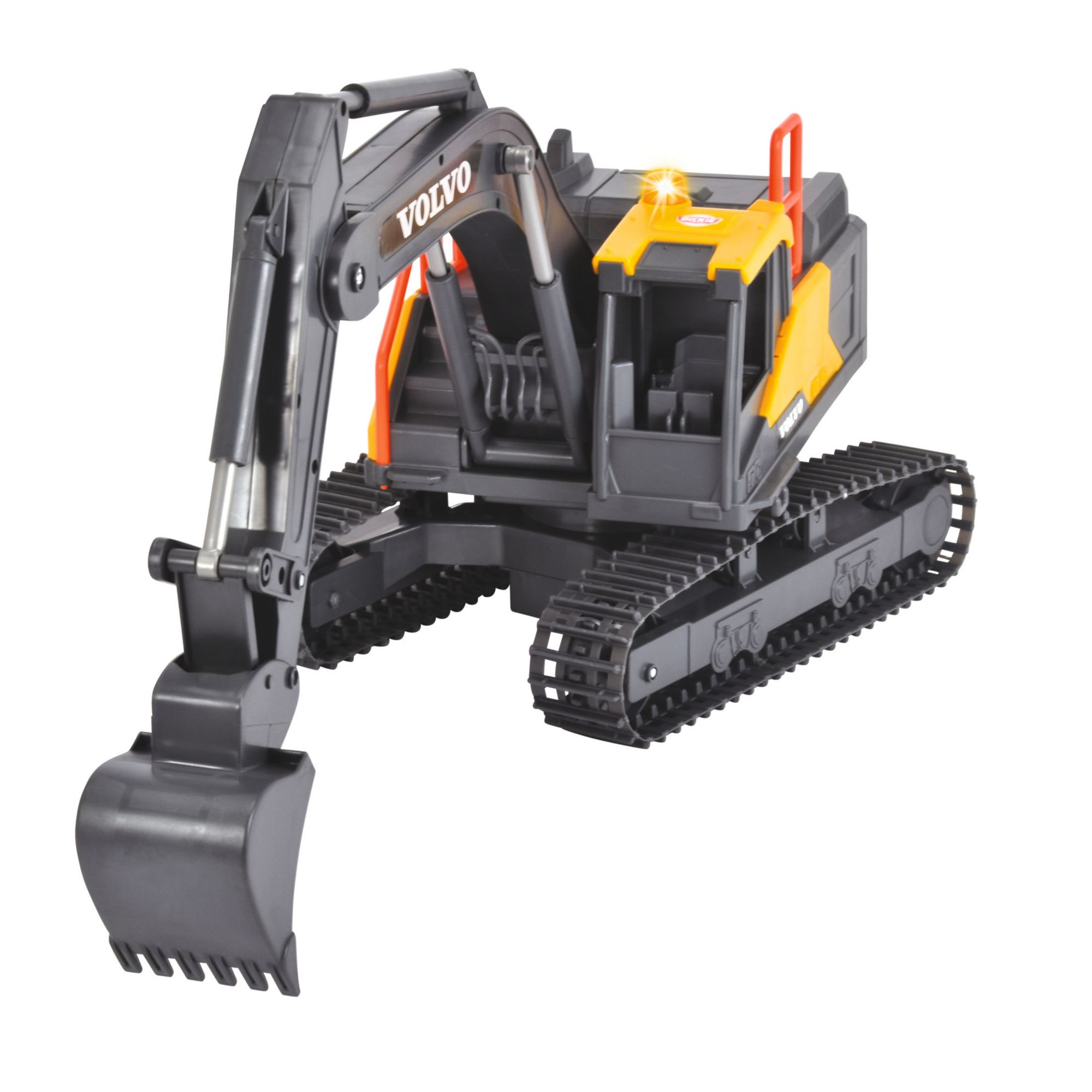 The toy excavator is modeled on the Volvo original and boasts an impressive design. It is controlled via a 4-channel, 2.4 GHz remote control and sports a wide range of features. The driver’s cabin can be rotated by 350° to give the driver a panoramic view of the surroundings. The excavator also features a chain drive and is easy to control via the remote control. The iconic shovel can also be operated with the remote control. The remote control features an intuitive and child-friendly design to ensure an action-packed digging adventure. The excavator is modeled on the Volvo Mining Excavator and features the original color scheme, as well as realistic sound and light effects. The excavator comes with a child-friendly remote control that is suitable for children aged 36 months and above. The vehicle requires four AA batteries (not included), and the remote control requires two AA batteries (not included).