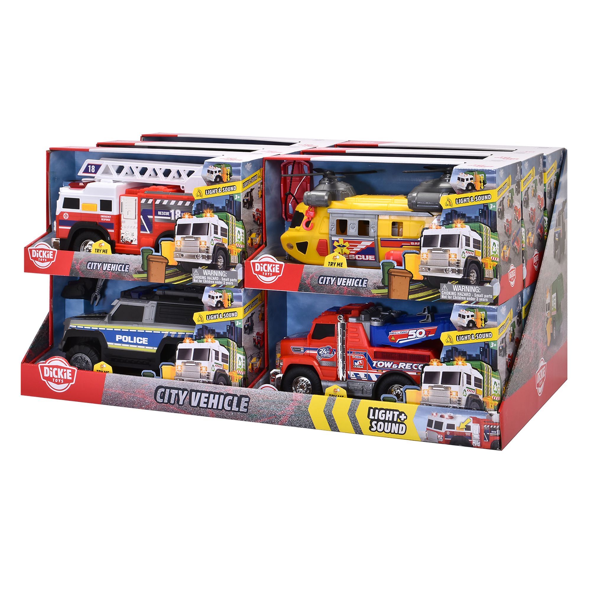 Free-wheeling vehicles Light and sound Length: 30cm Battery included Ages ranges: 3+ years Includes Dickie Toys Action Series Vehicle