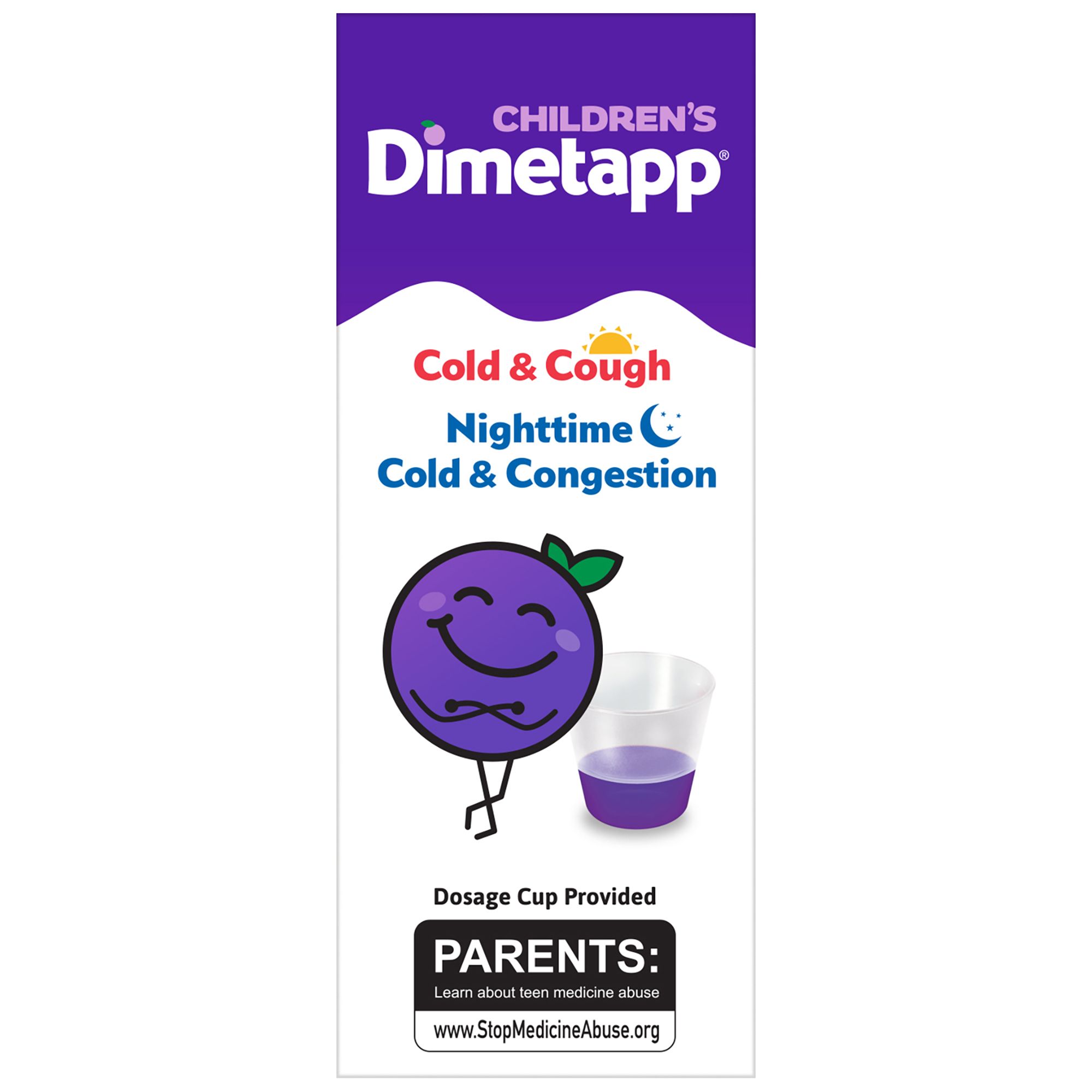 Dimetapp Cold & Cough and Dimetapp Nighttime Cold & Congestion are specifically formulated for children aged 6 years and older; Do not use in children under the age of 6 years