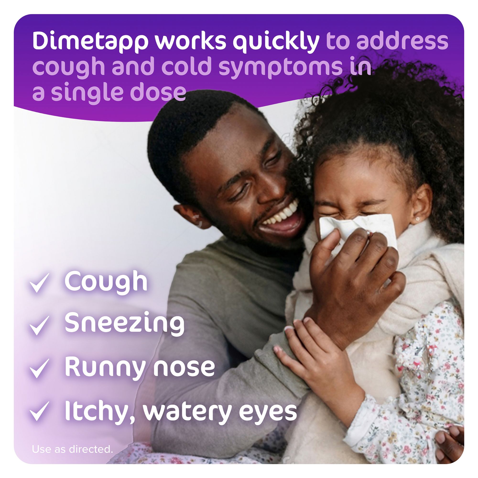 Pharmacist recommended brand: Dimetapp’s products are safe and effective children’s cold medicines formulated to pack a punch against stuffy, runny nose, itchy, watery eyes, sneezing and cough symptoms