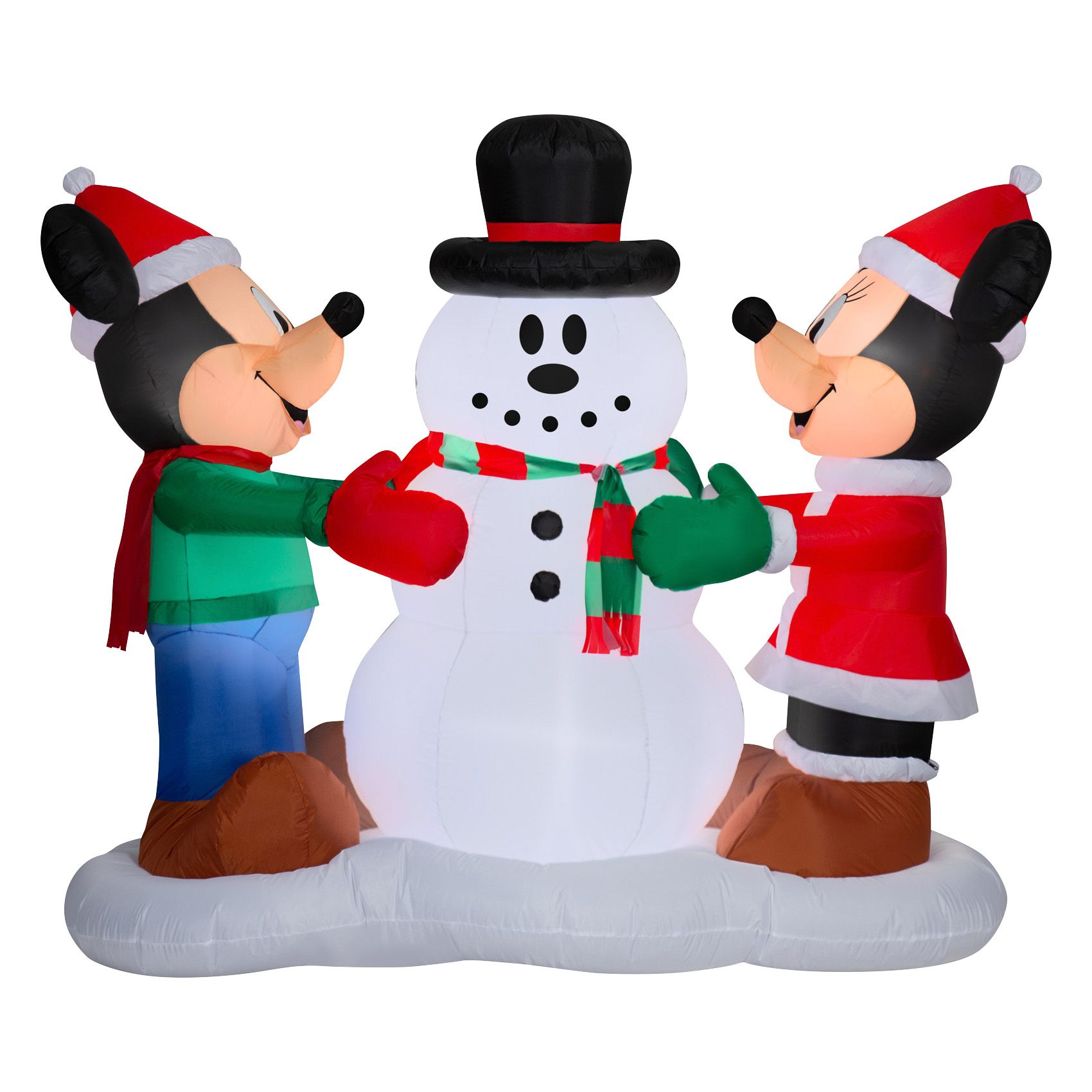 Disney Christmas 5' Inflatable Mickey Mouse and Minnie Mouse Snowman Decorating Scene