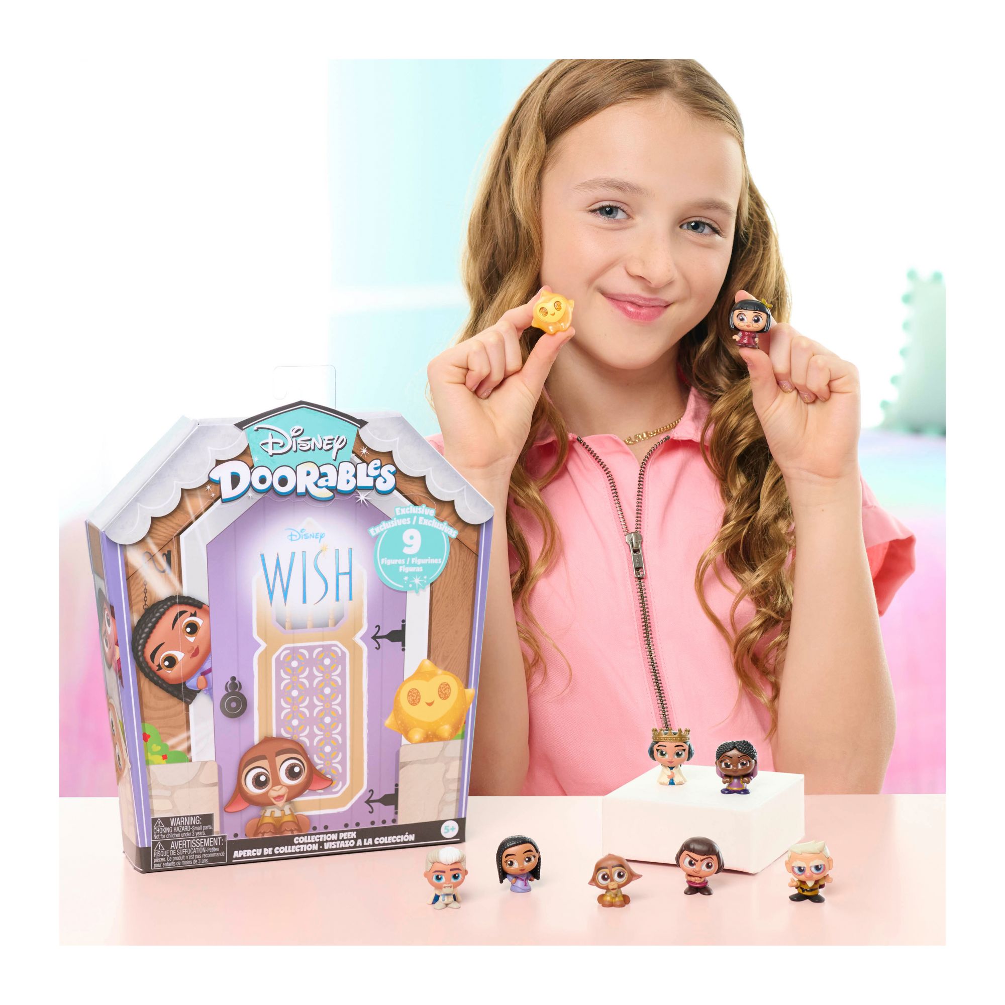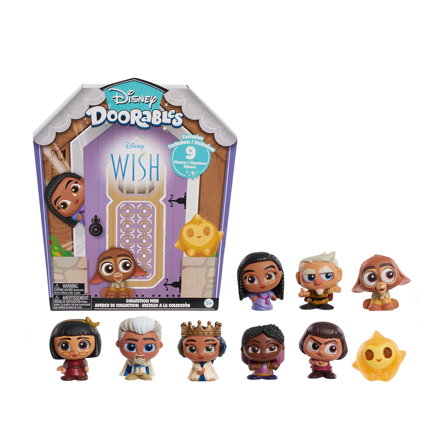 Behind every door a starry surprise is in store with the Disney Doorables Wish Collection Peek. Discover an enchanting collection of nine exclusive figures inspired by the Disney’s 62nd animated feature film, Wish. Each figure stands approximately 1.5" tall and is intricately styled with Doorables’ signature glittery eyes. This Peek gives fans the ultimate unboxing experience with a unique package featuring peel-and-reveal secrets. Characters include Asha, Valentino, Star, Sabino, Dahlia, Sakina, Gabo, Magnifico, and Amaya. Ideal for collecting and trading, fans of Disney toys will love to display and share these stunning characters. Disney Doorables Collection Peeks are ideal for kids and fans ages 5 years and up.