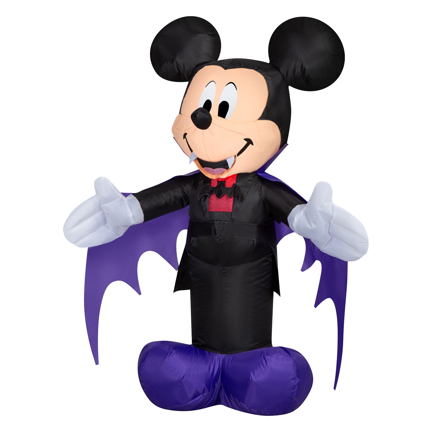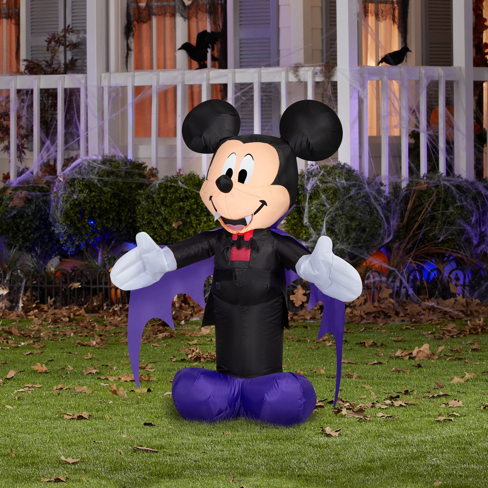 Disney fans will love this Halloween Airblown inflatable Mickey Mouse in a vampire costume! Wearing vampire teeth, a purple cape, and a black suit, he makes a spooktacular addition to your outdoor Halloween decorations. Setup is super simple. Just plug it in, stake it down, and watch the magic unfold. Display this Disney halloween inflatable as a standalone or combine it with other airblown inflatables to create a custom scene.